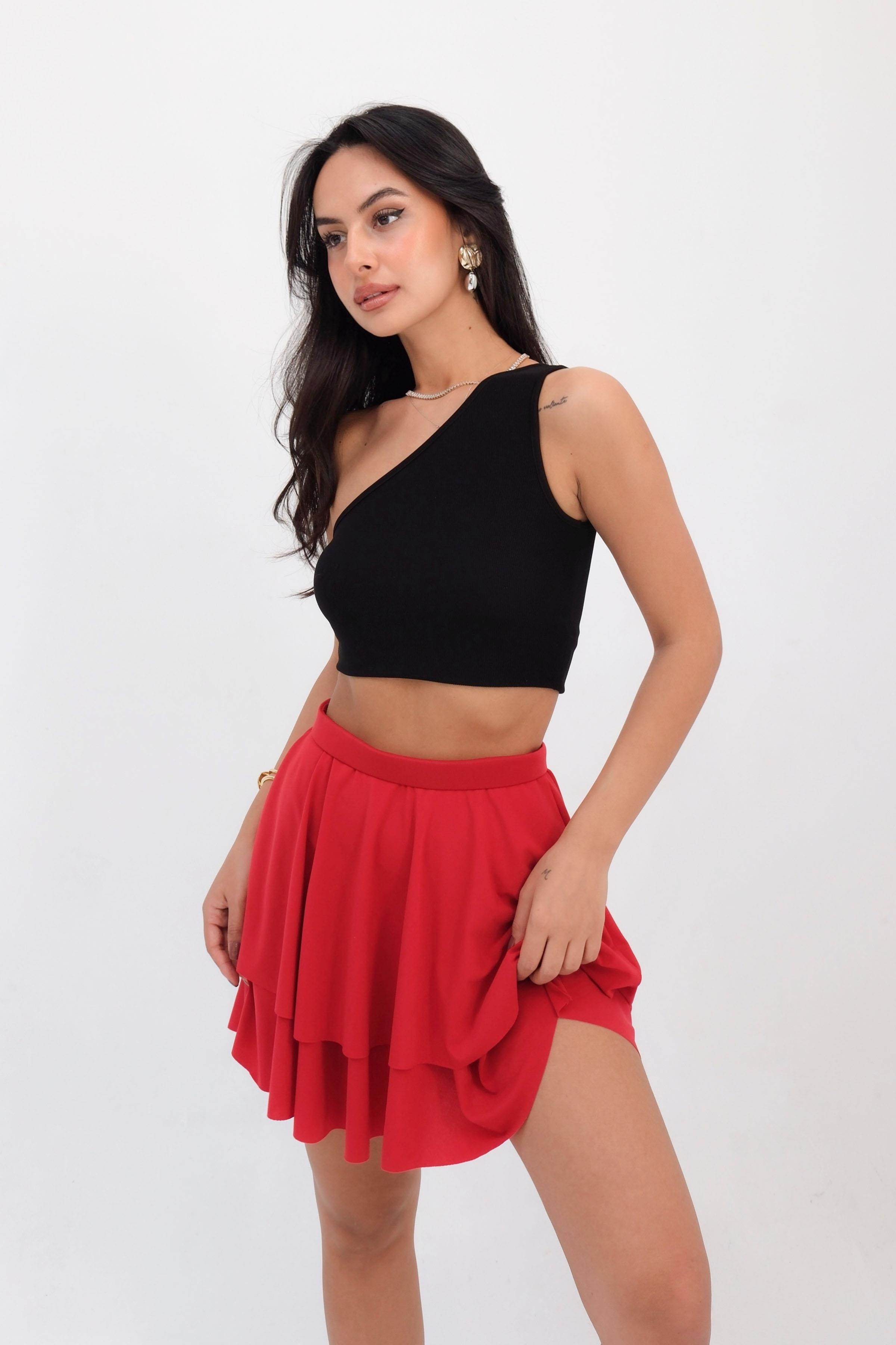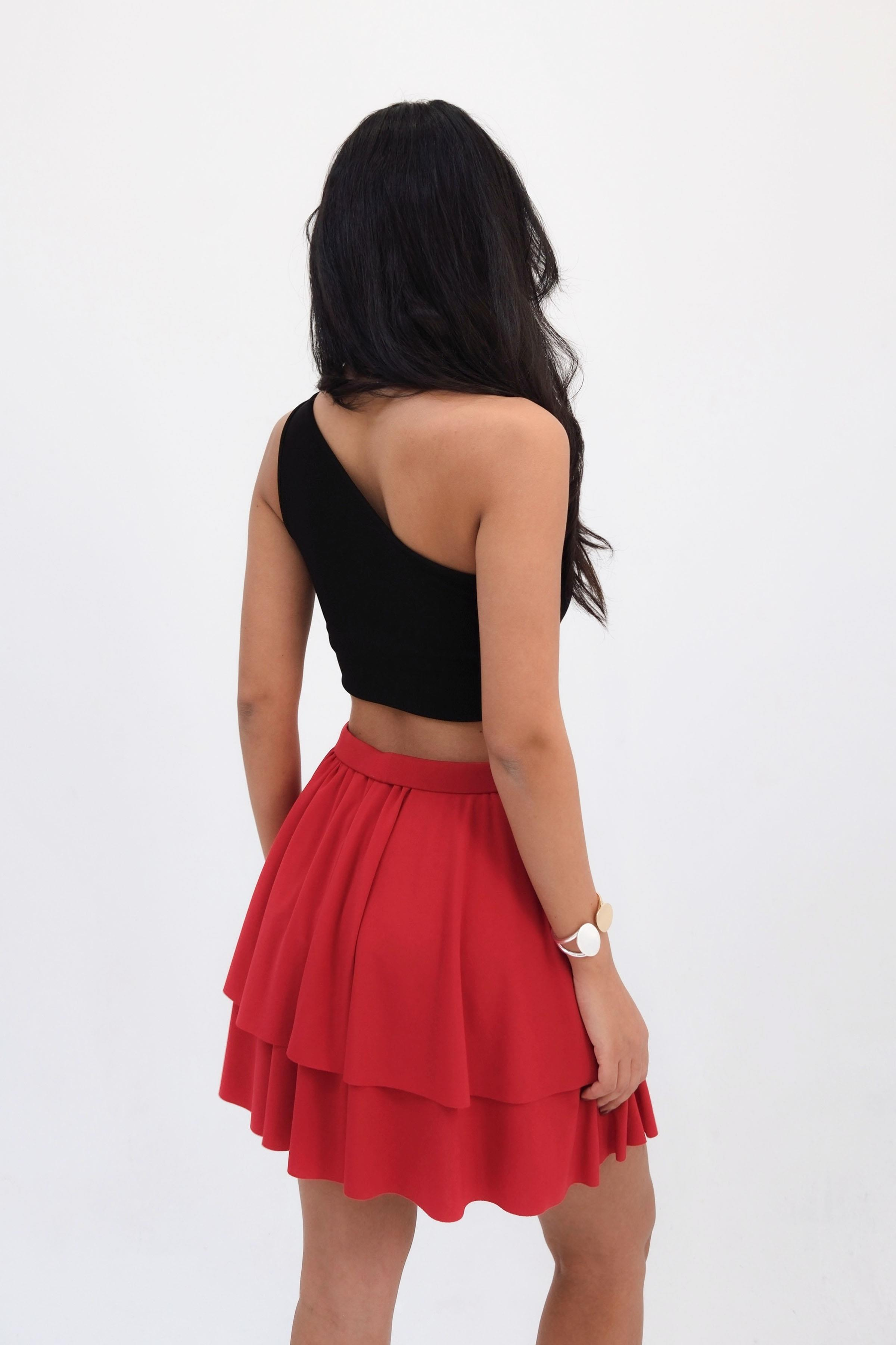 Women’s Elastic Waist Tiered Ruffle Mini Skirt - Red (Y-25-7753)