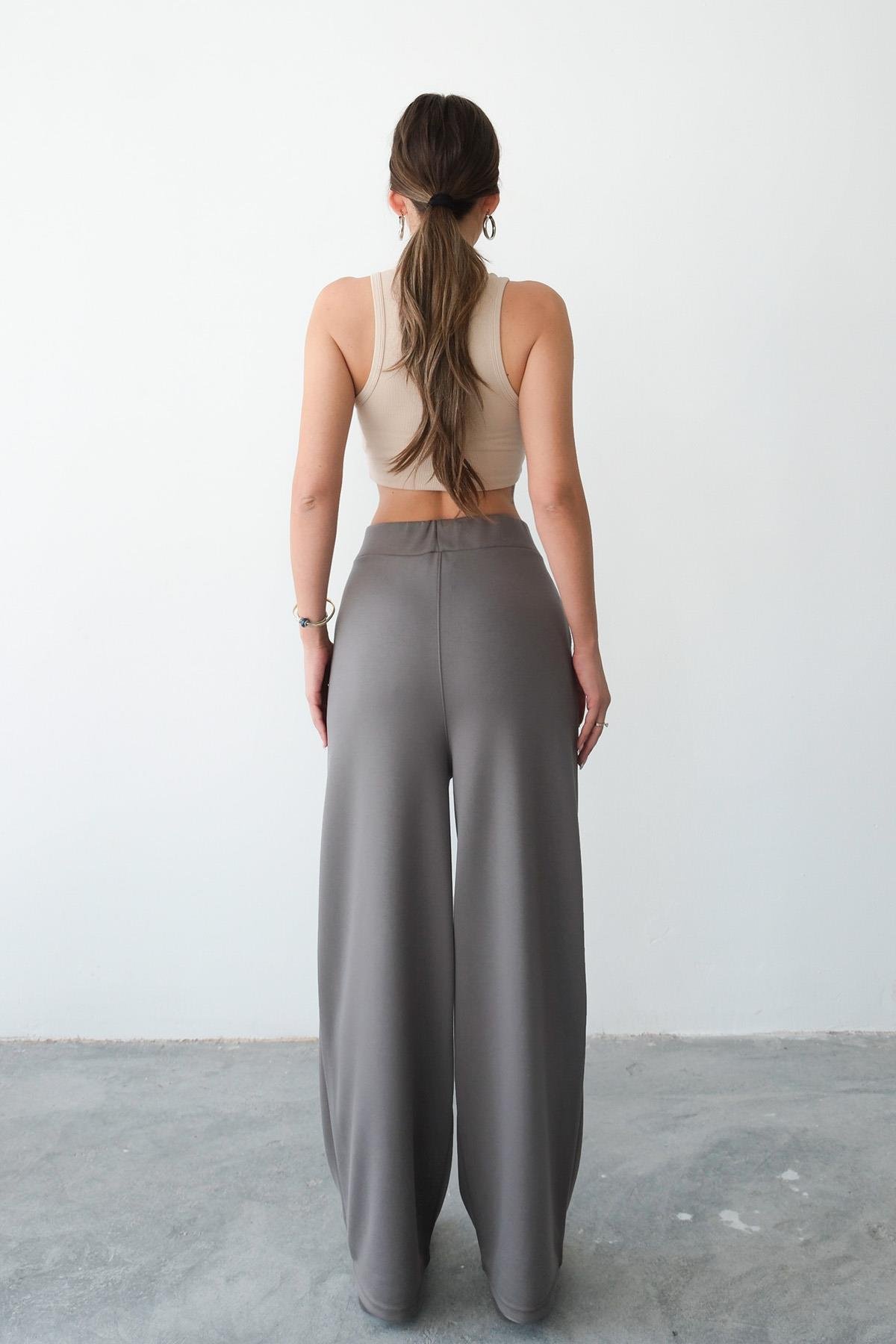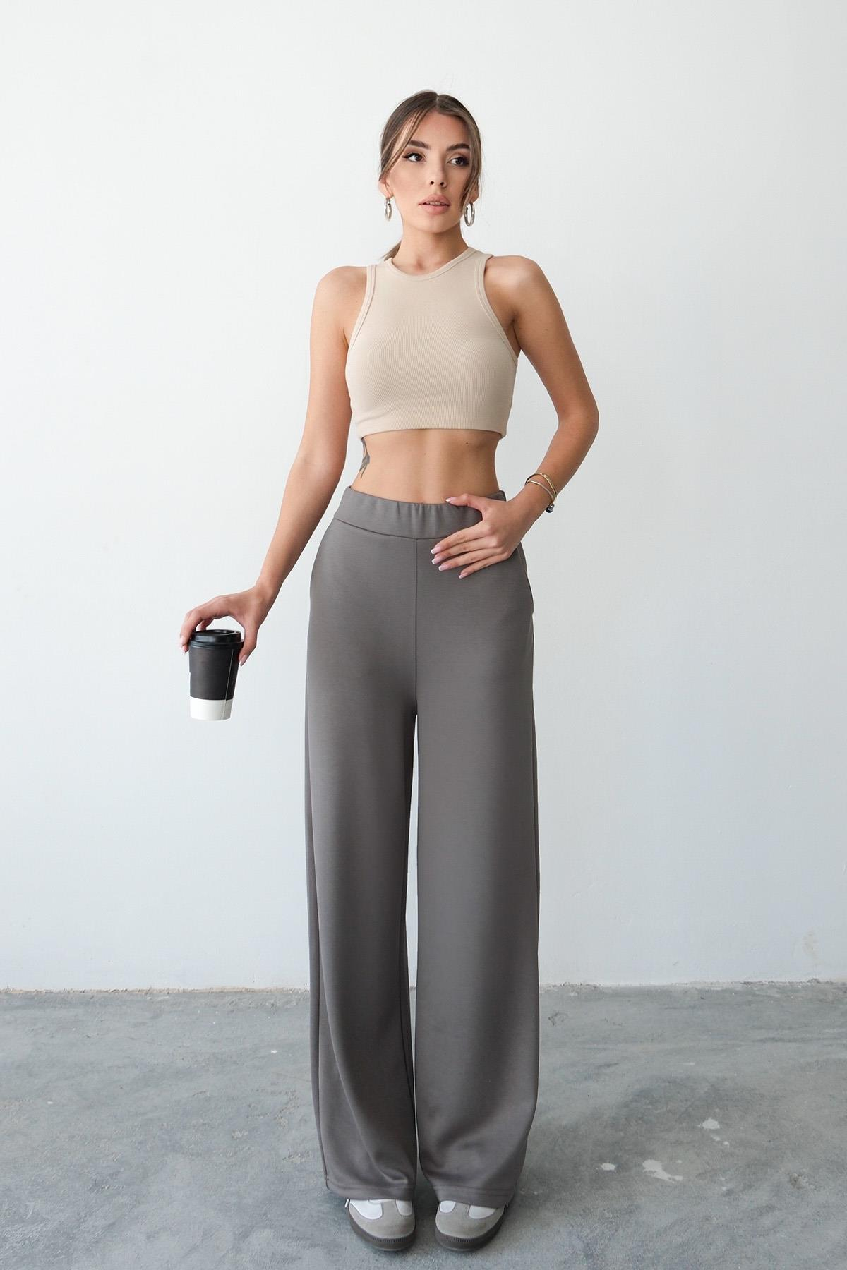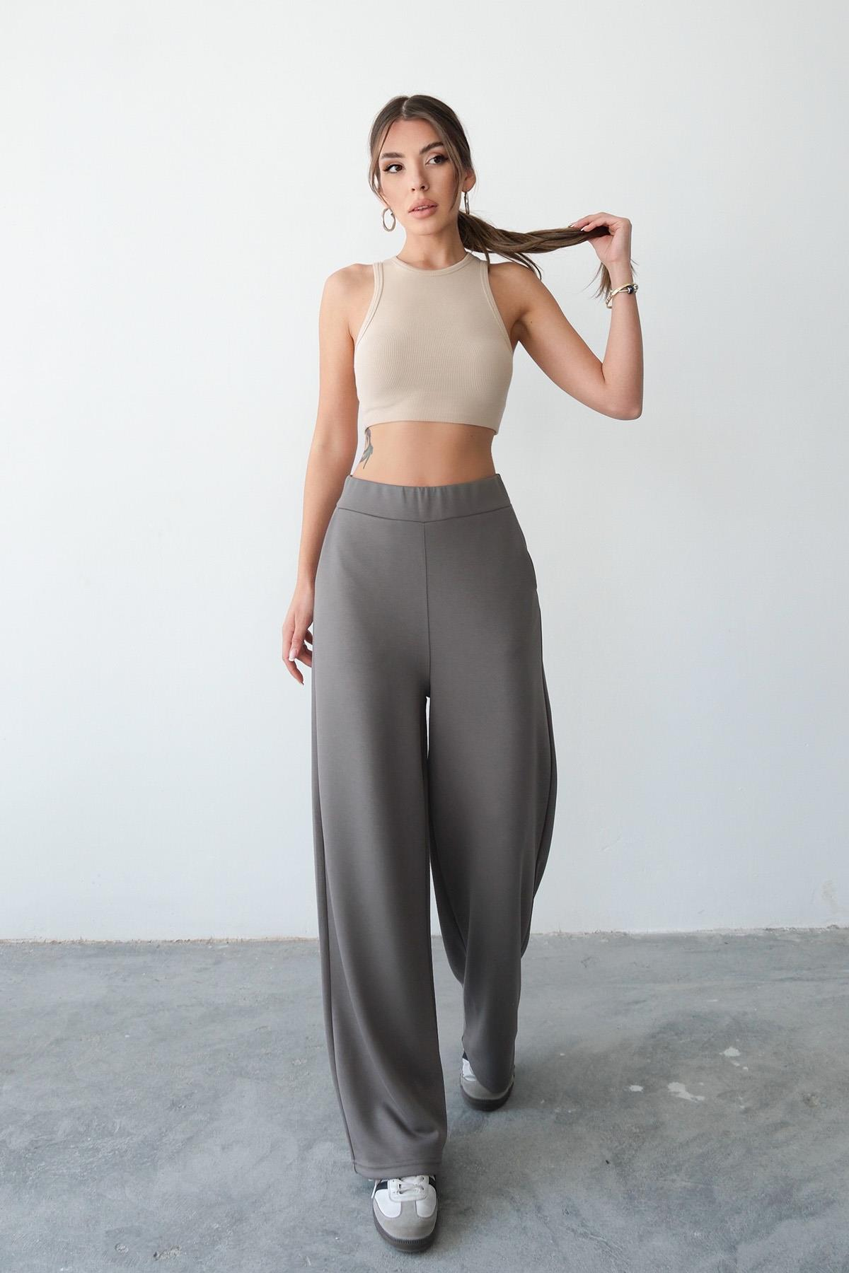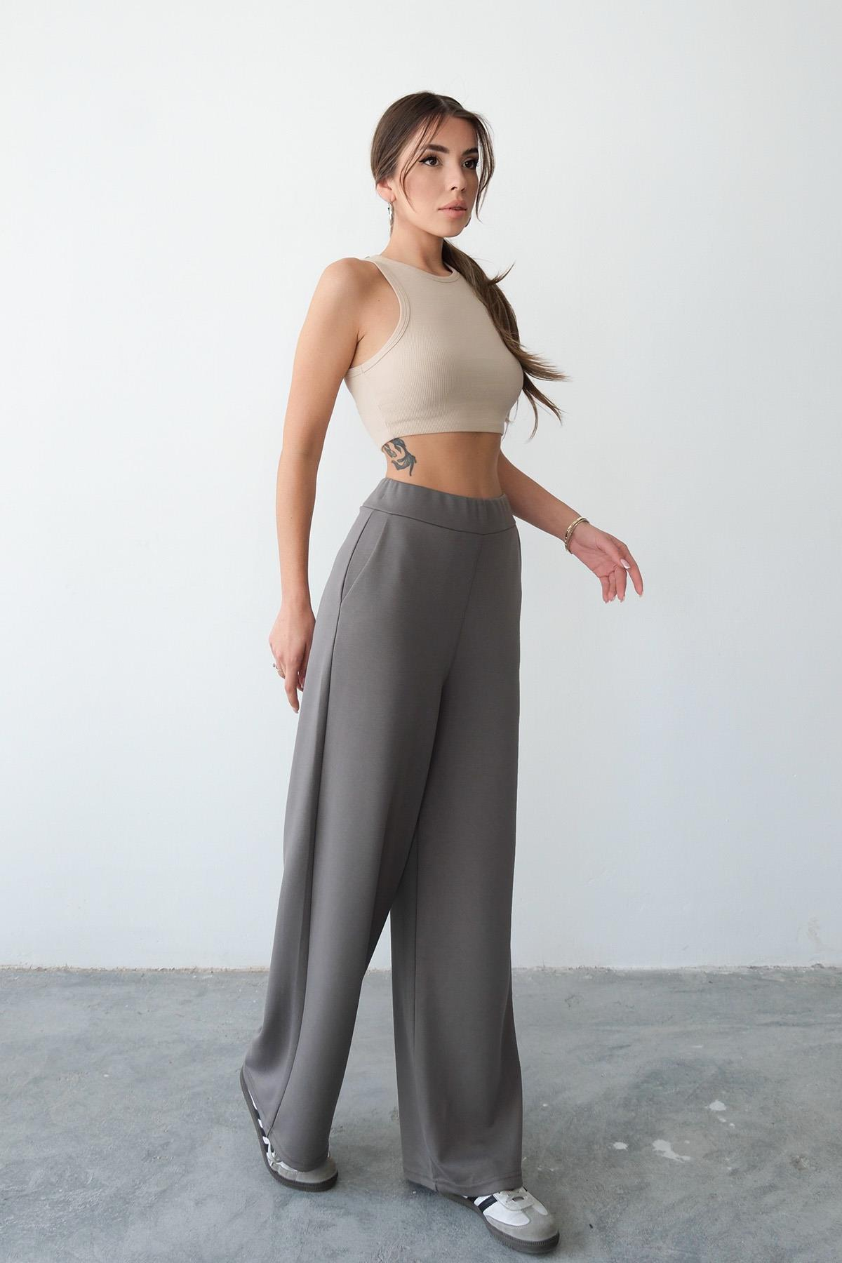 Women’s Elastic Waist Relax Fit Wide-Leg Sweatpants with Pockets - Taupe (Y-25-7729)