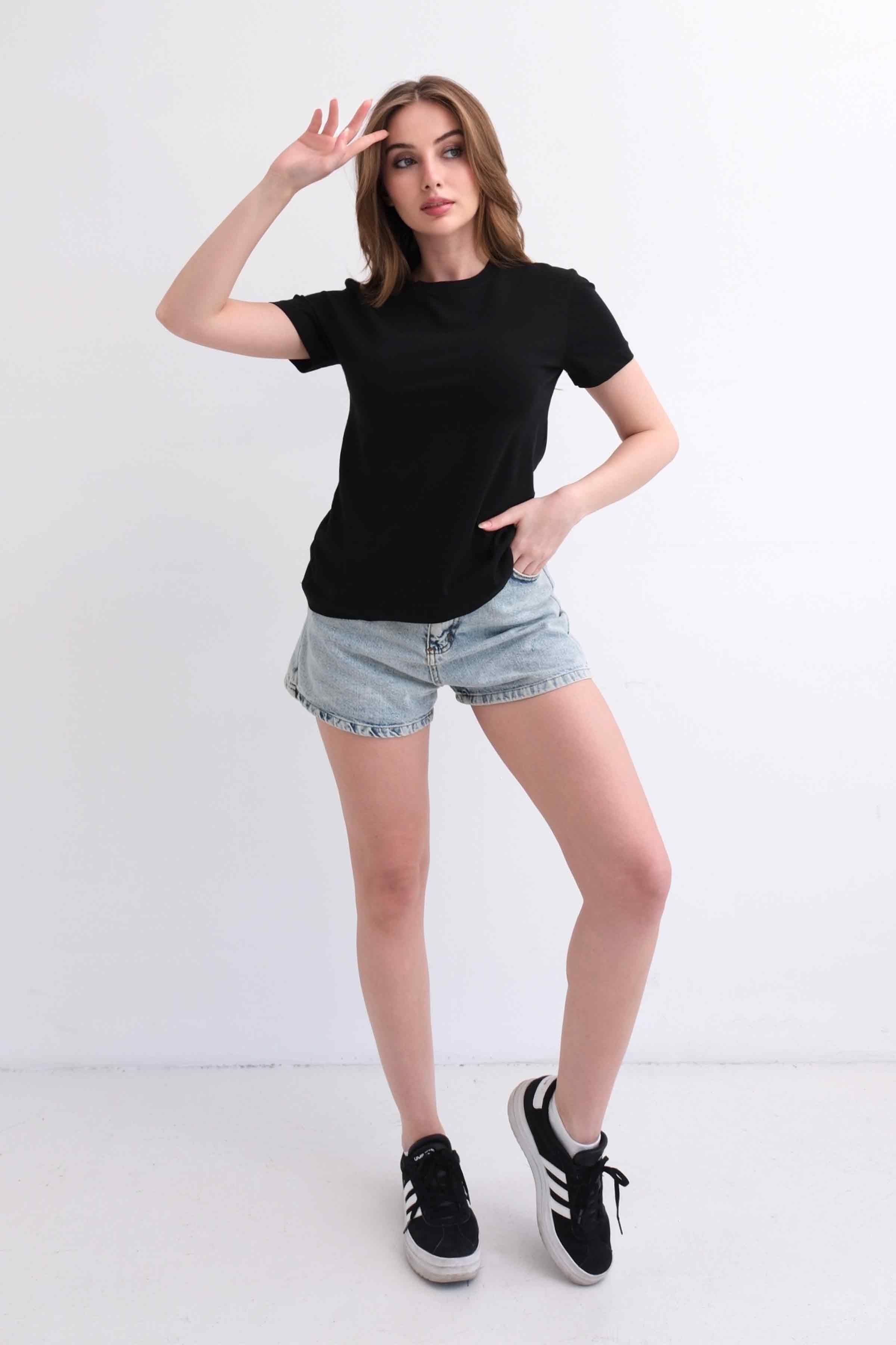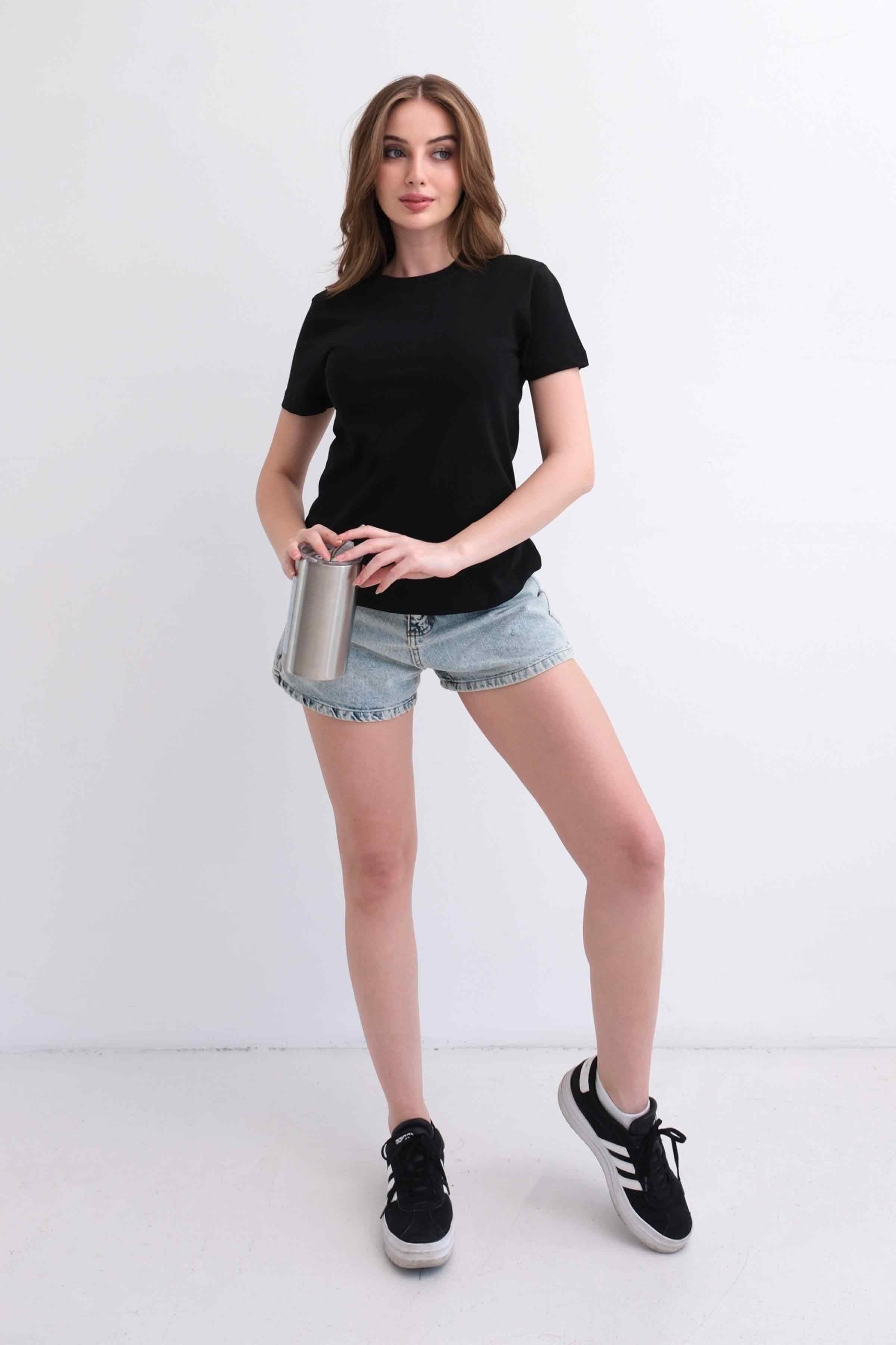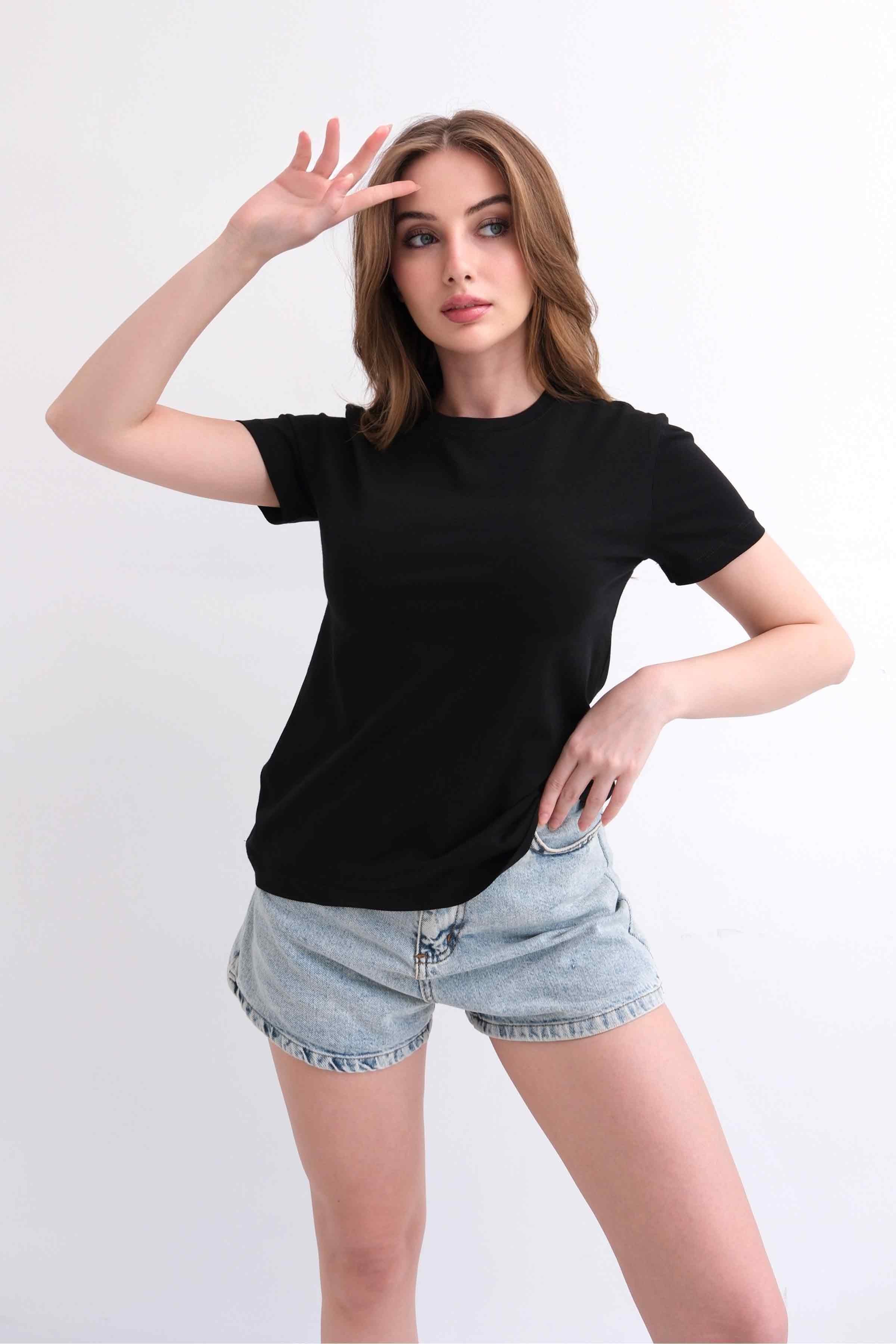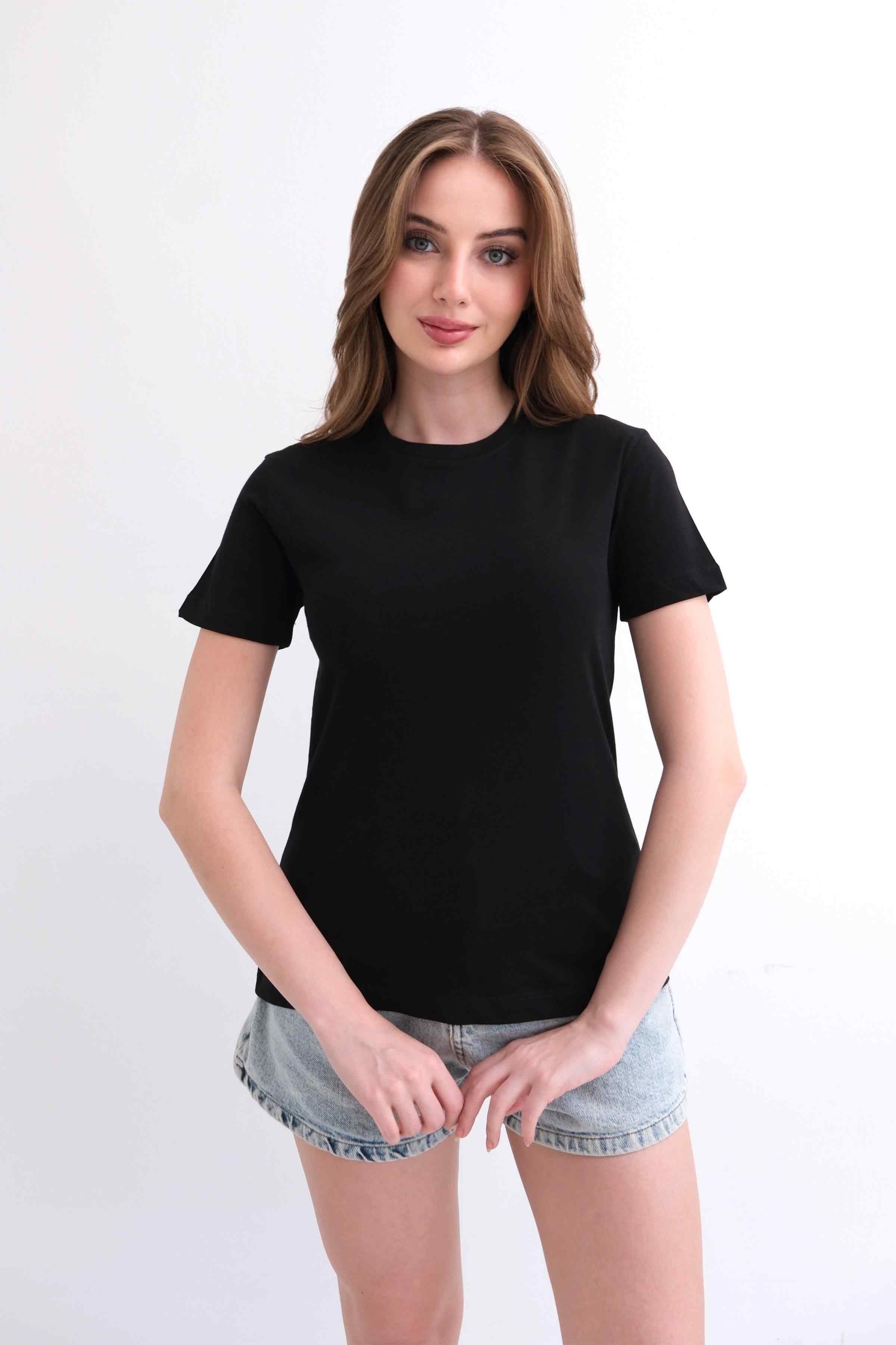 Women’s Crew-Neck Plain 100% Cotton Basic T-Shirt – Black (Y-25-7768)