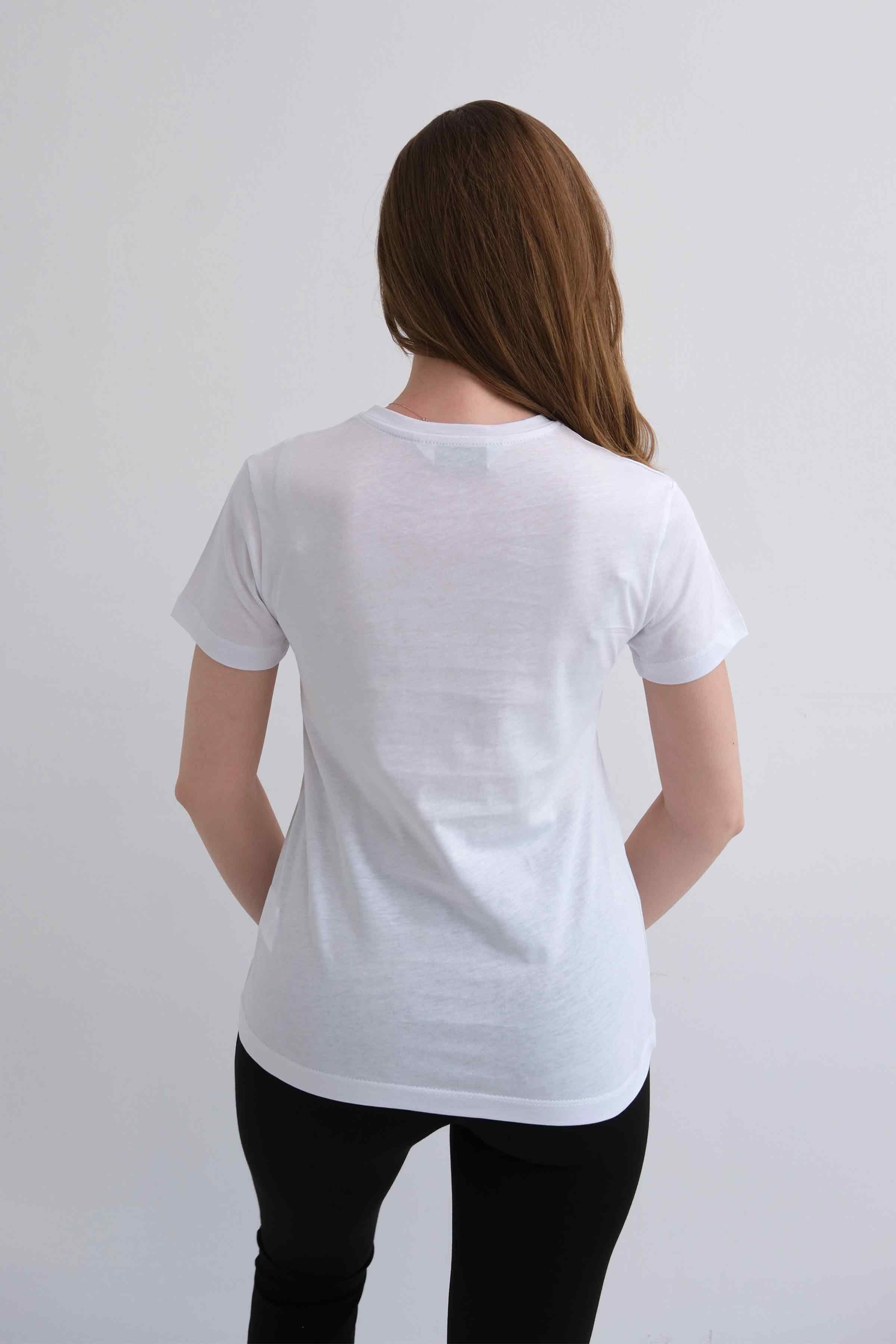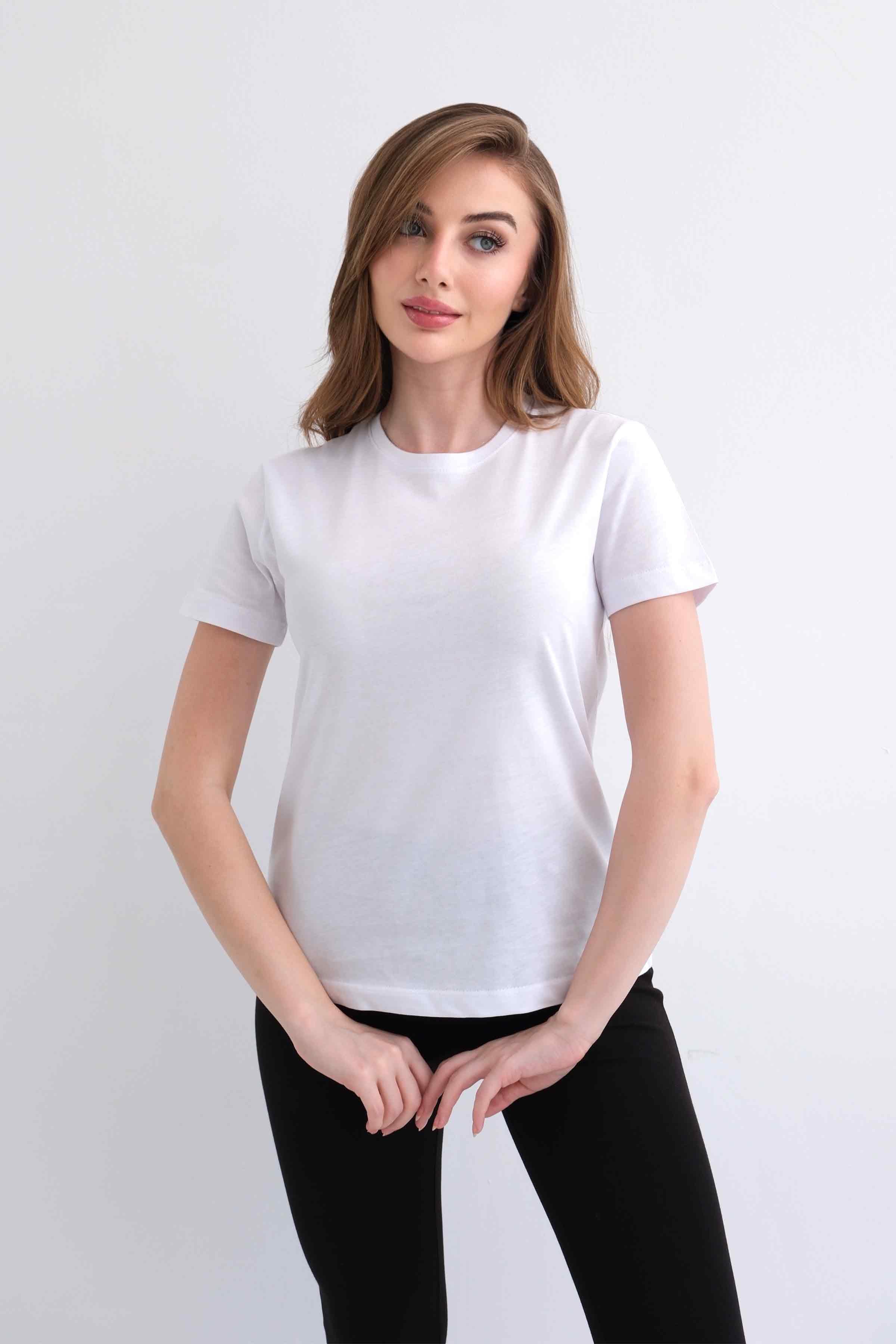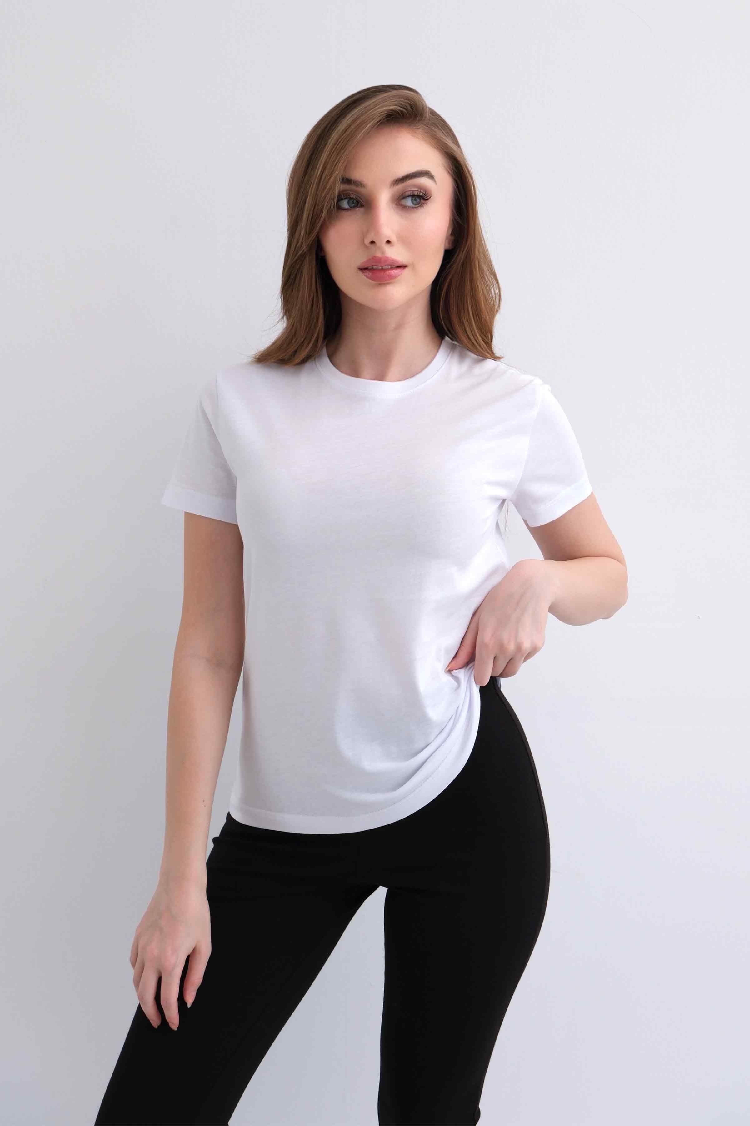 Kadın Bisiklet Yaka Düz Baskısız %100 Pamuk Beyaz Basic Tişört
