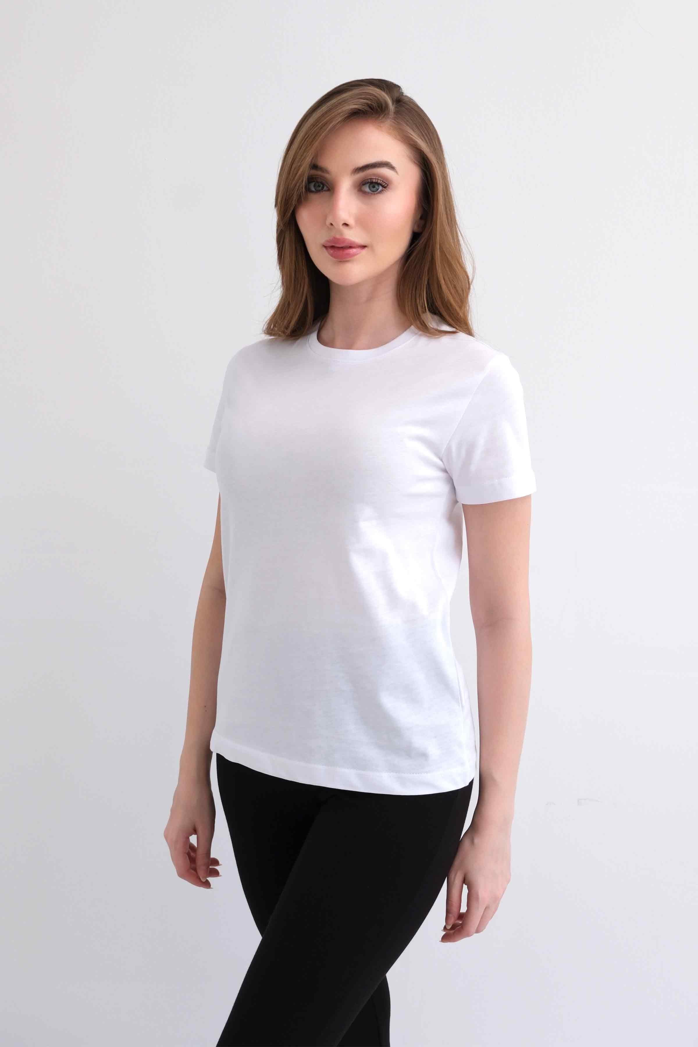 Women’s Crew-Neck Plain 100% Cotton Basic T-Shirt – White (Y-25-7768)