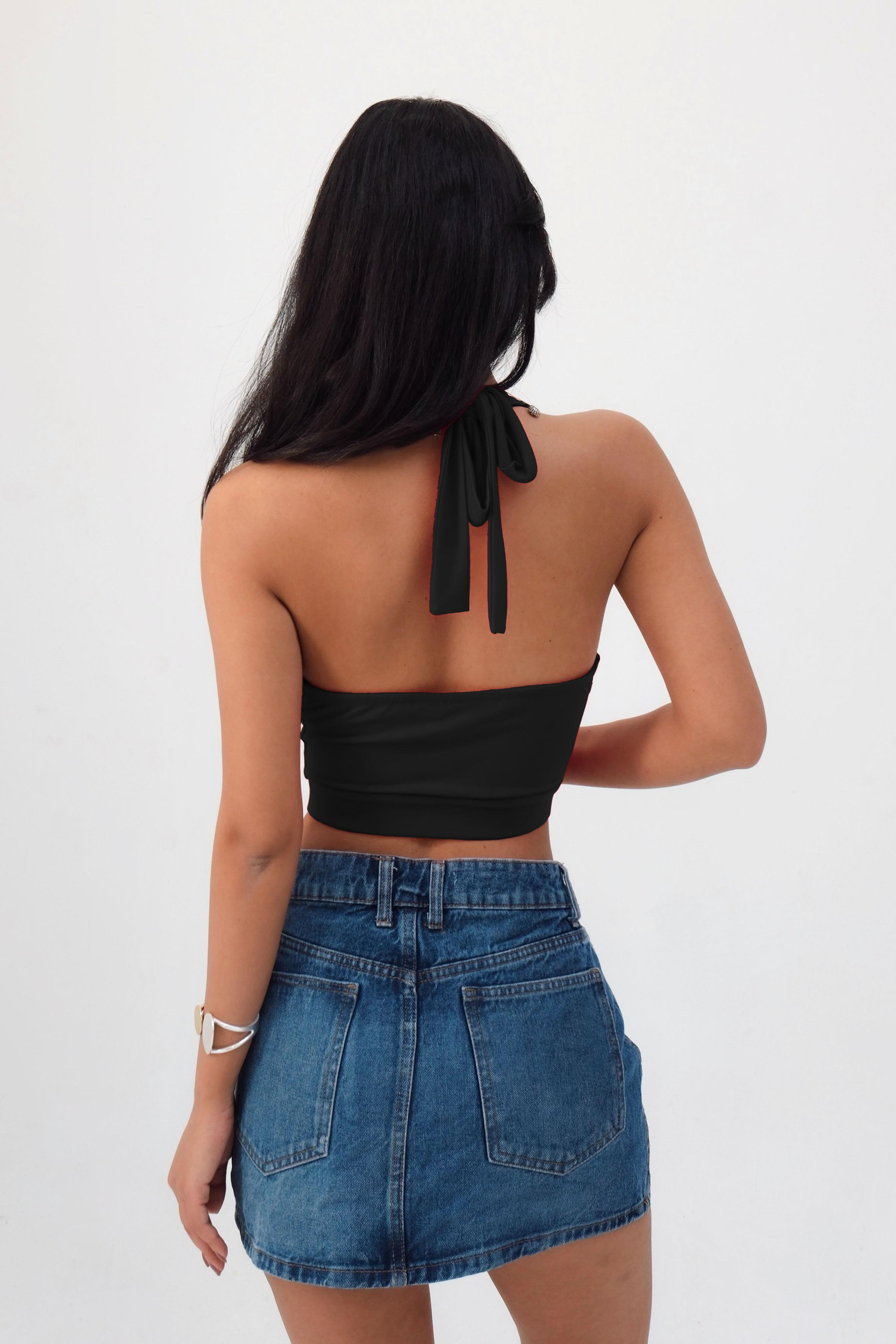 Kadın Boyundan Bağlamalı Degaje Yaka Crop Top Bluz
