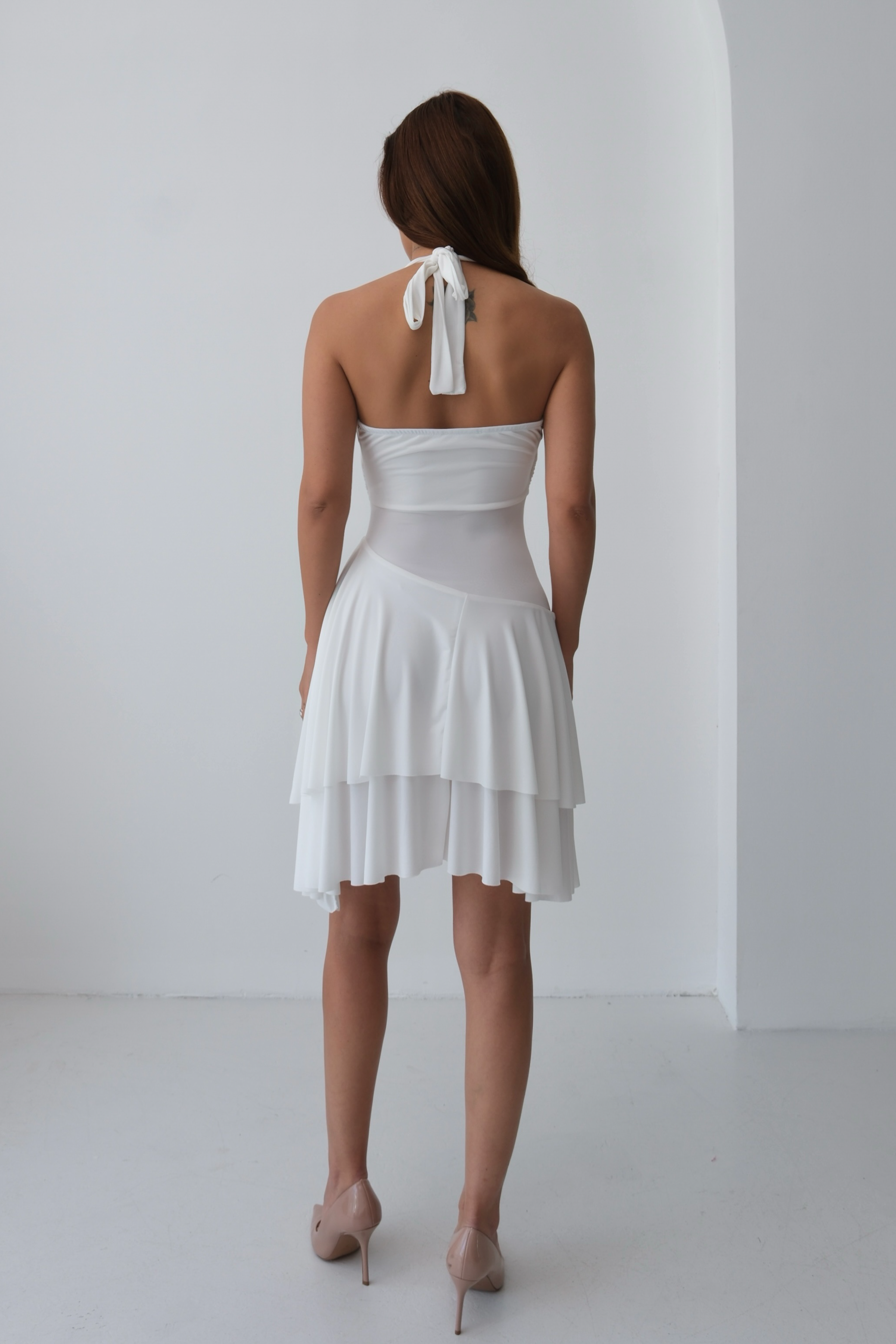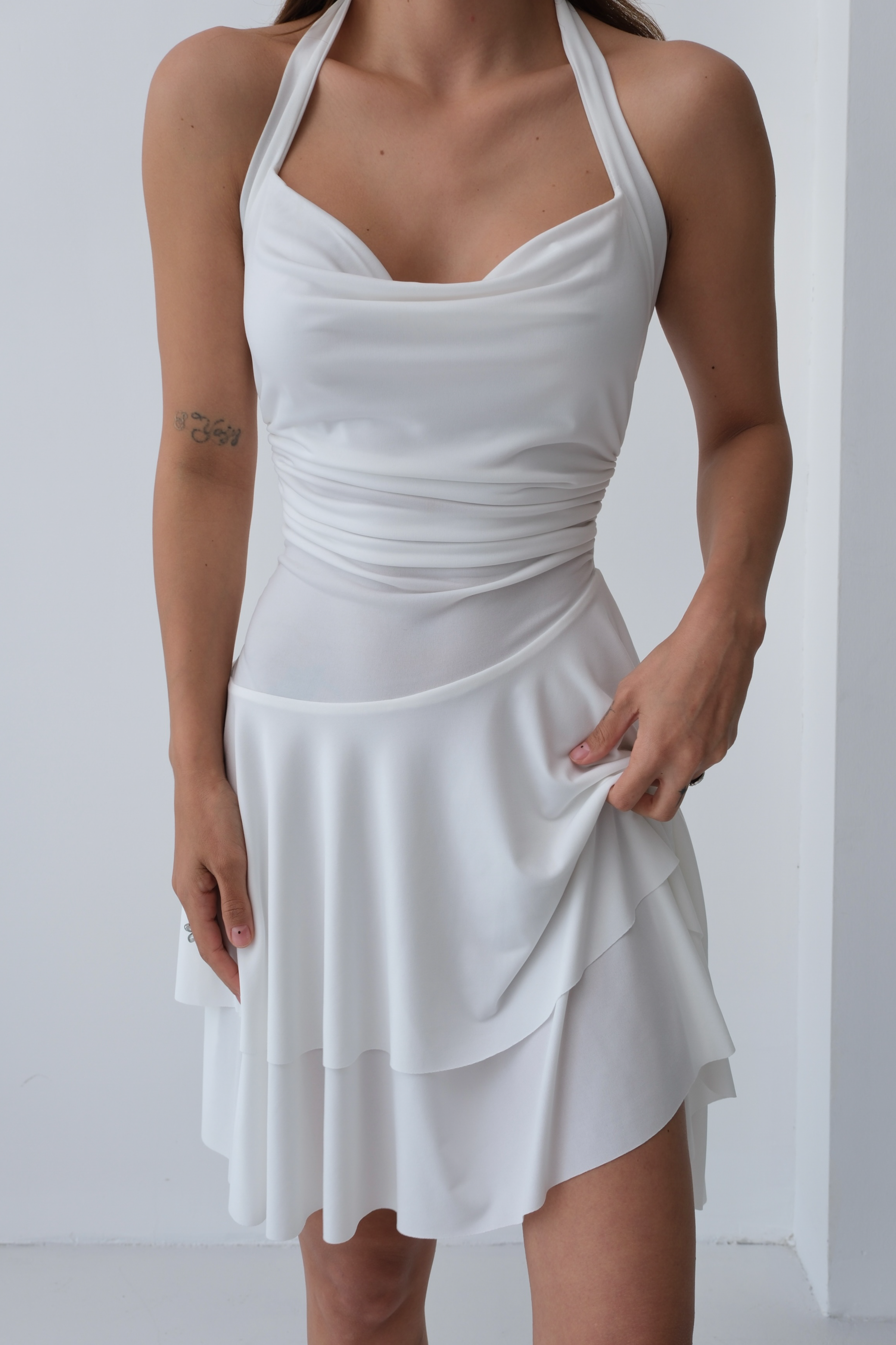 Women’s Halter Cowl-Neck Pleated Sandy Mini Dress - White (Y-25-7752)