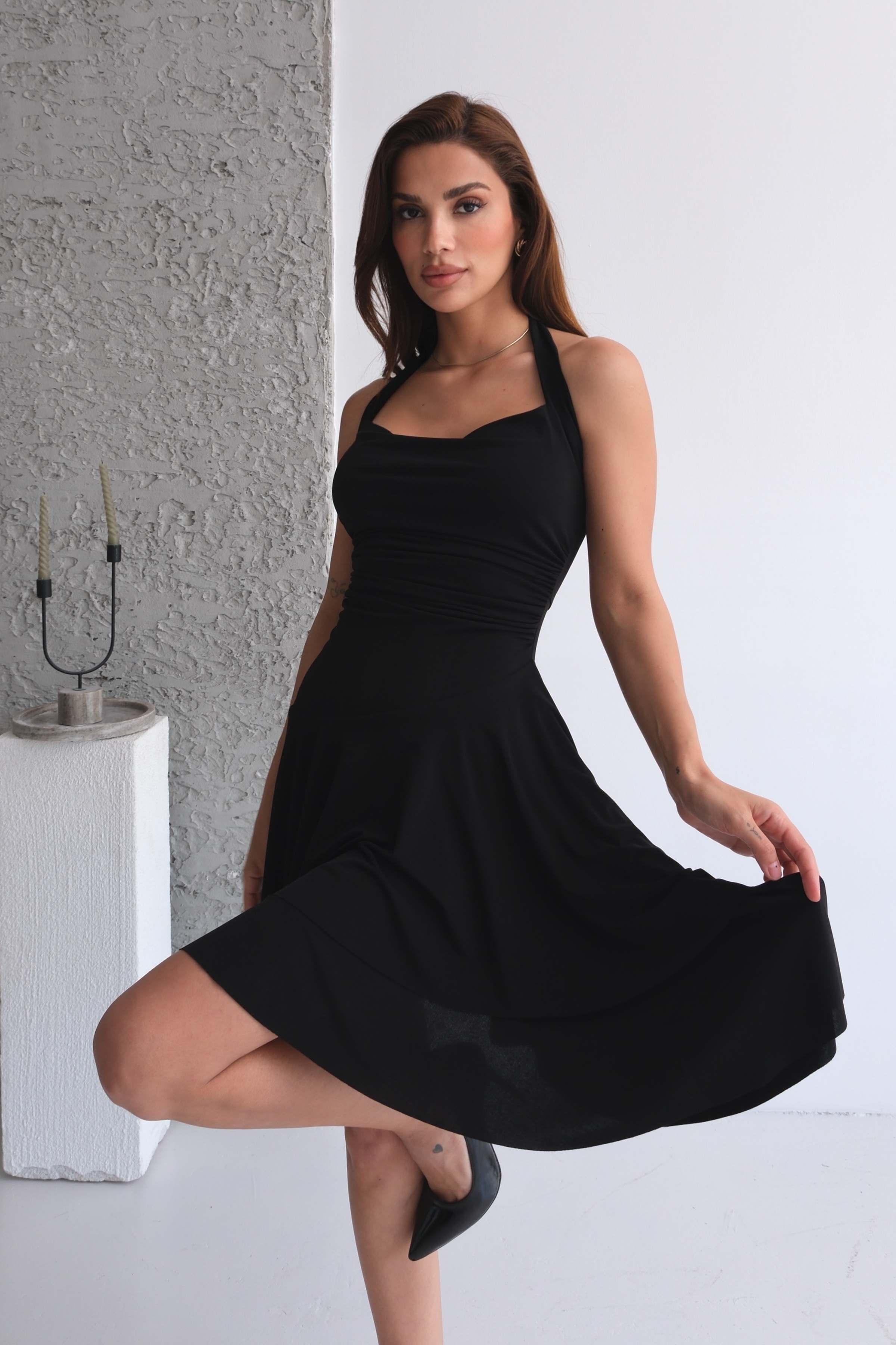 Askılı elbise tarzını sevenler için ise boyundan bağlamalı formuyla farklı bir yorum sunarak şıklığınızı bir adım öteye taşır.