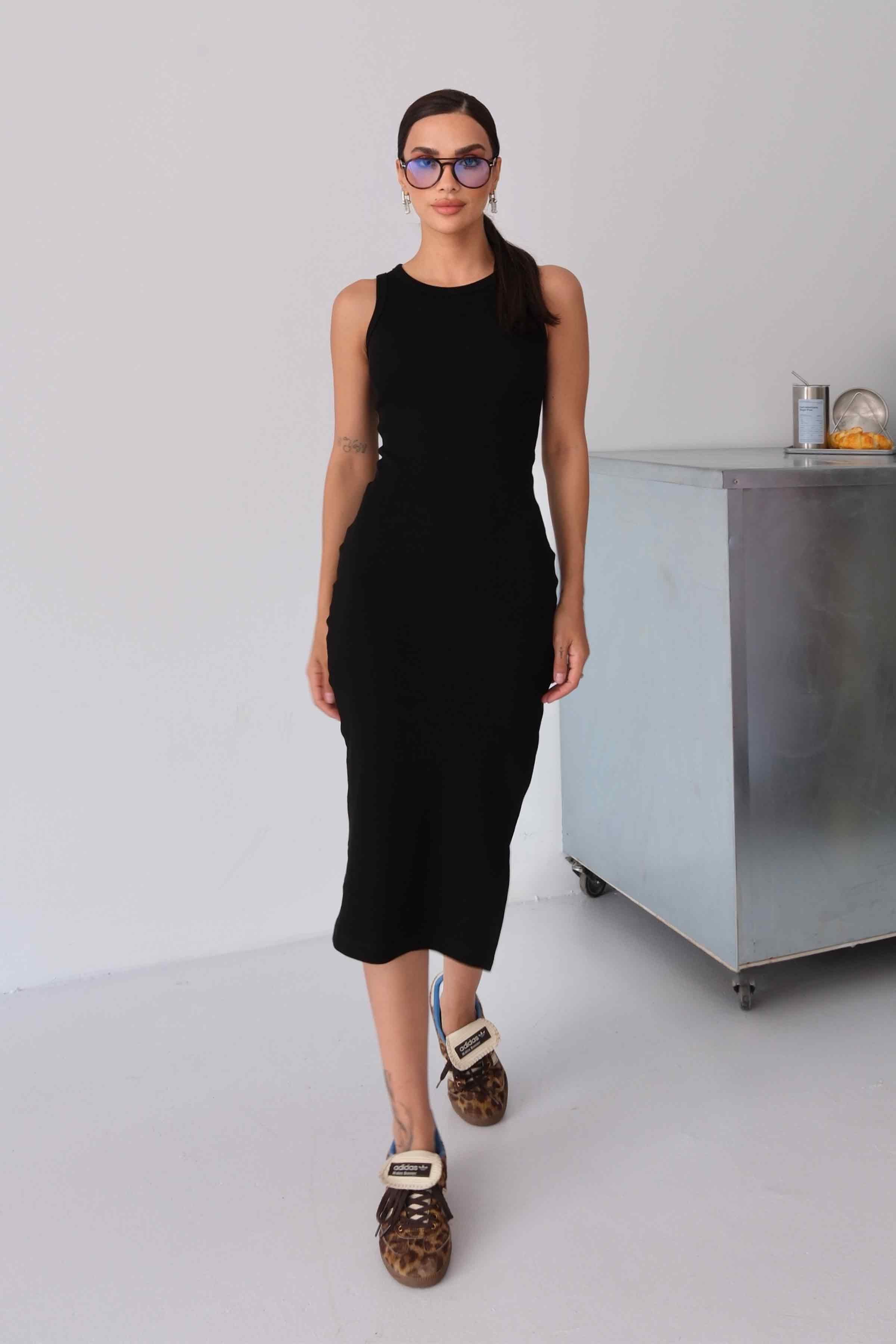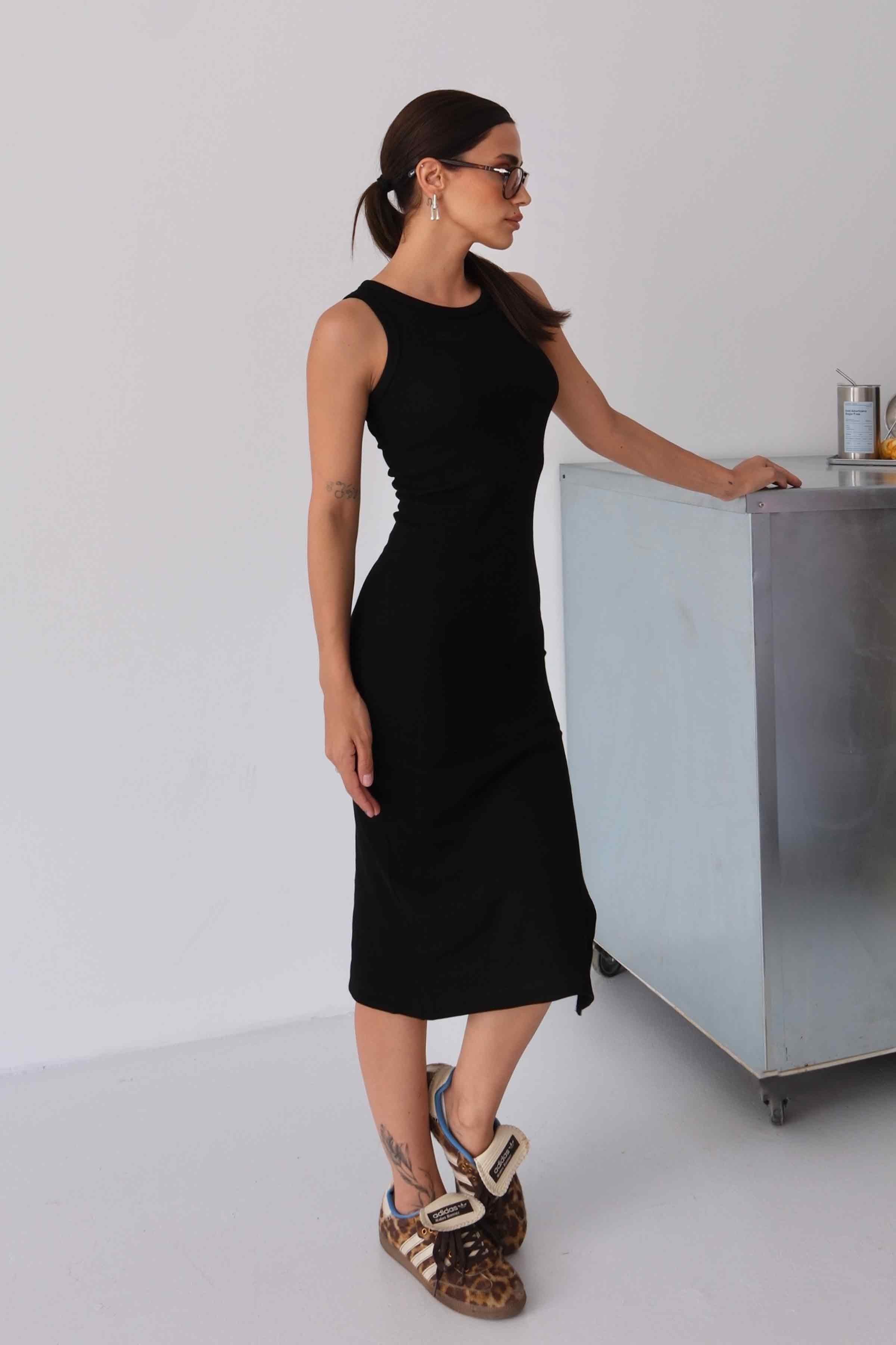 Women’s Halter-Neck Ribbed Midi Pencil Dress – Black (Y-25-47158)