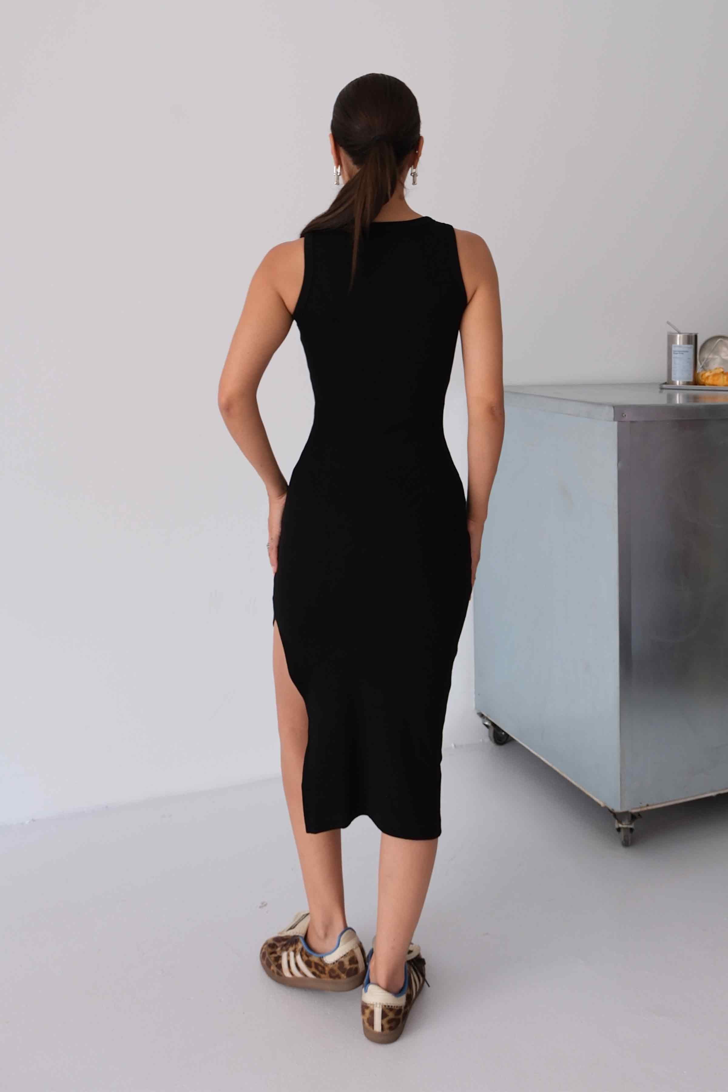 Women’s Halter-Neck Ribbed Midi Pencil Dress – Black