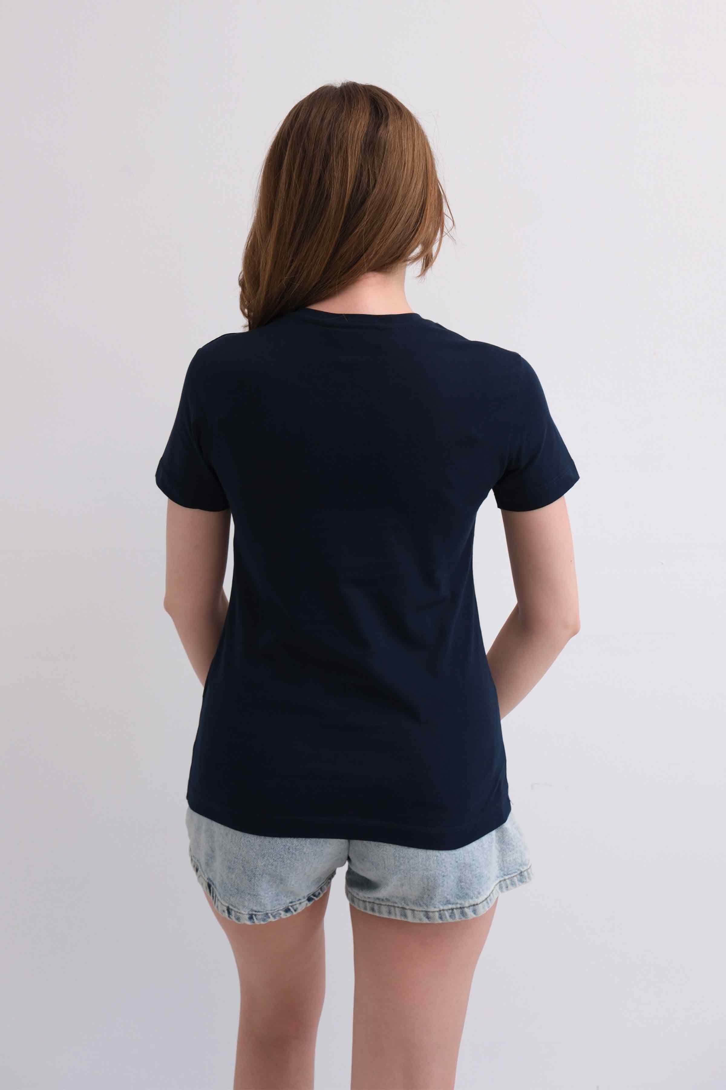 Women’s V-Neck Plain 100% Cotton Basic T-Shirt – Navy (Y-25-7769)