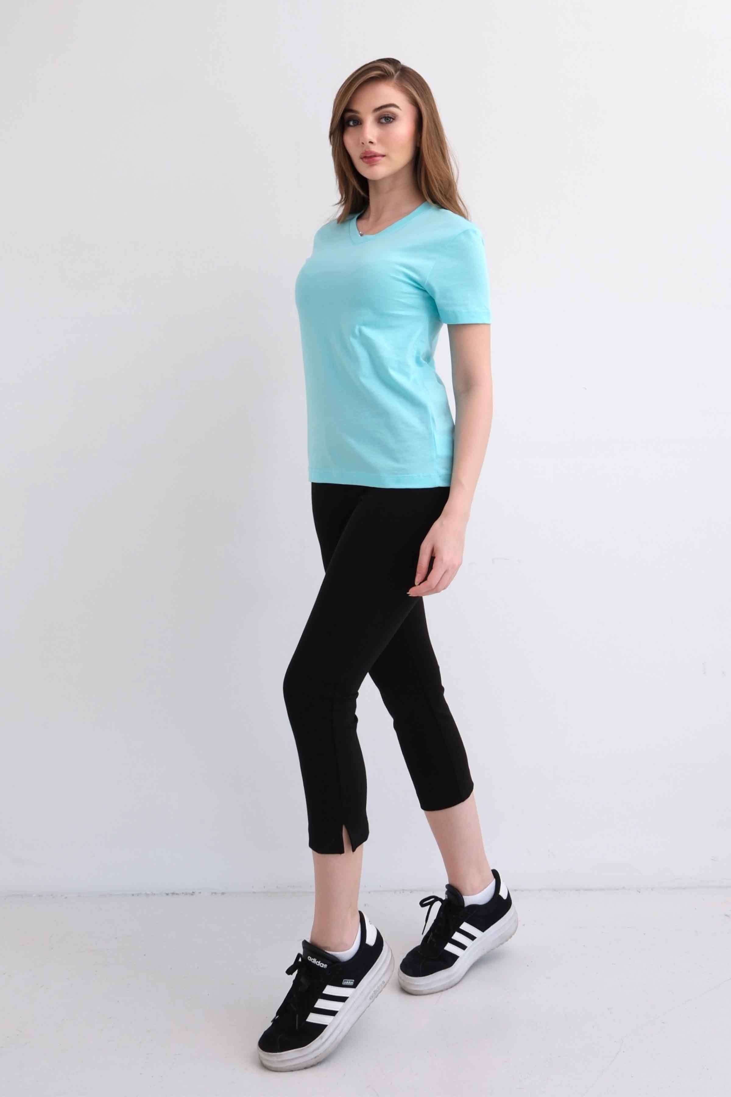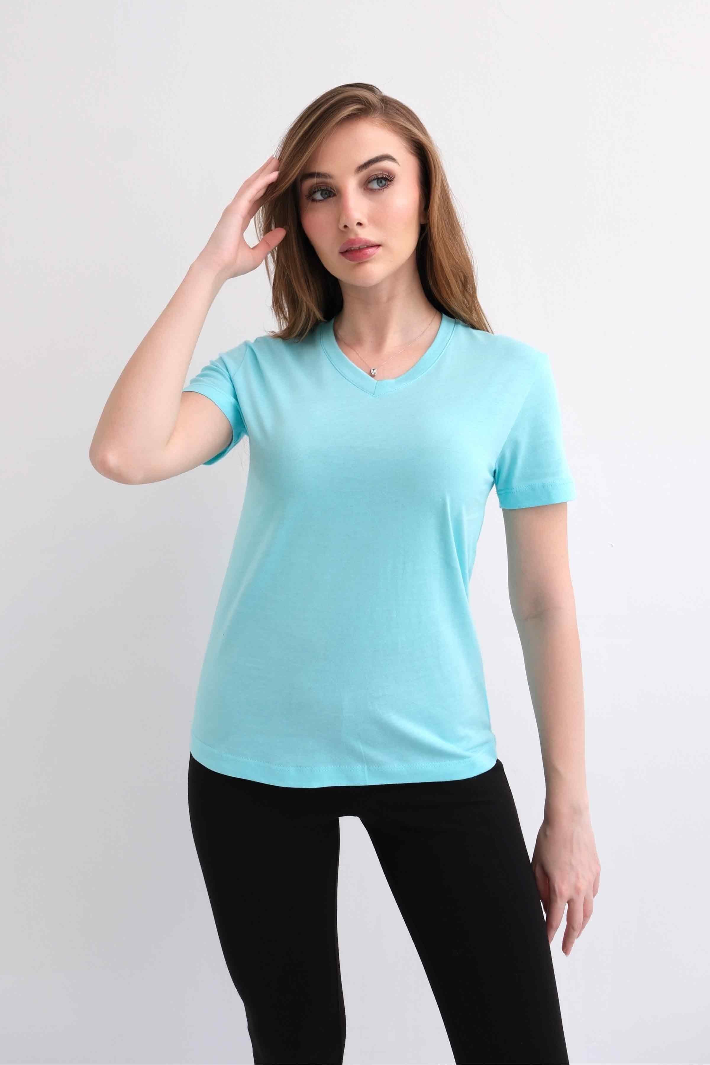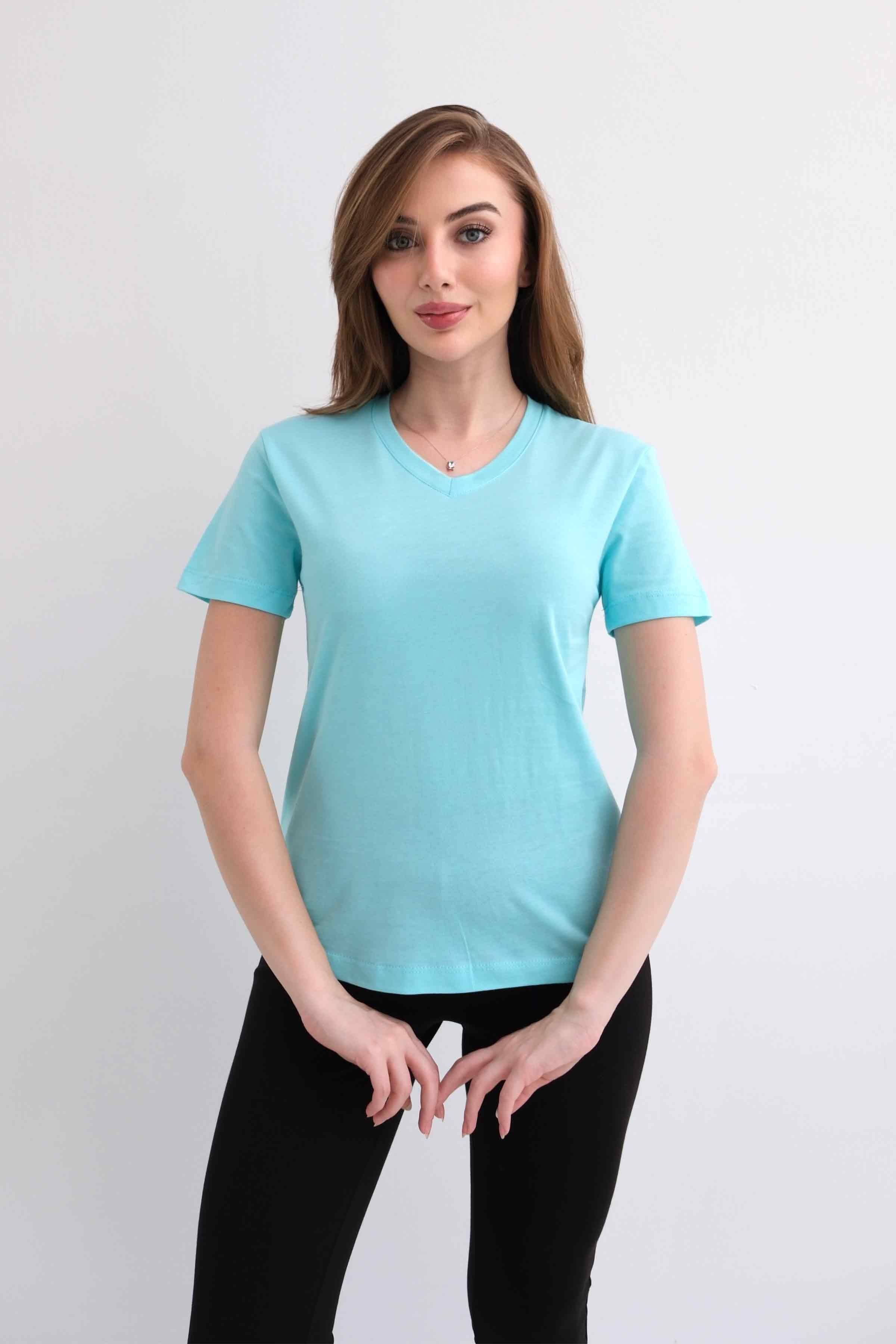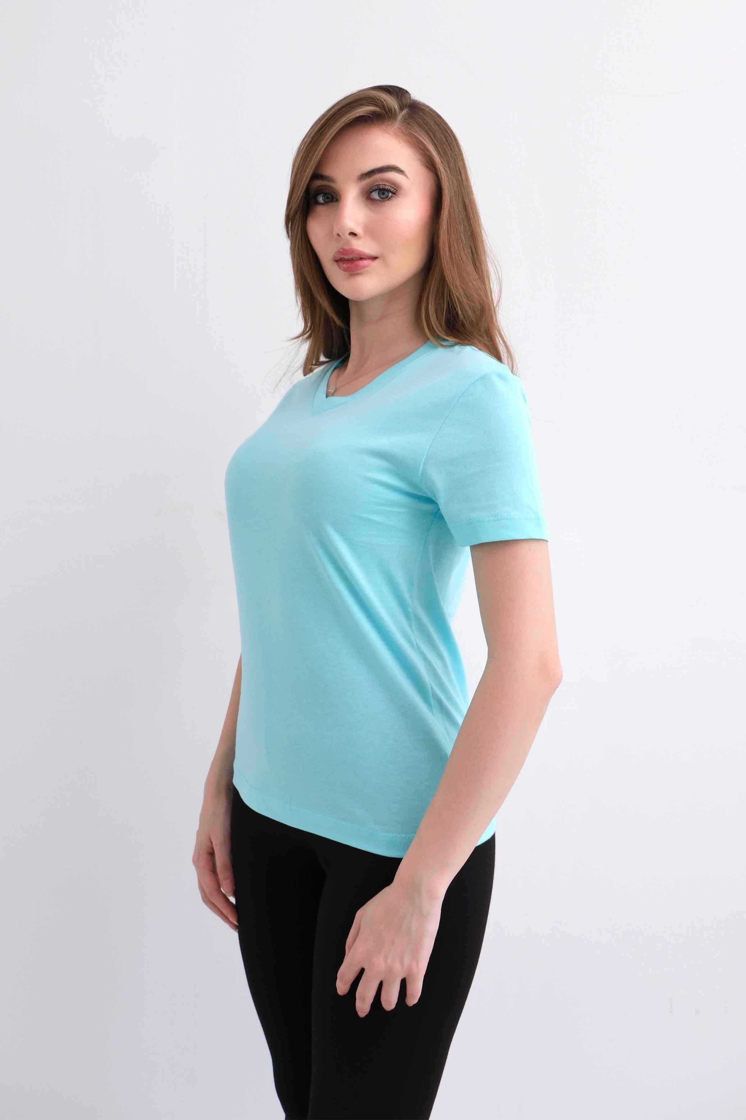 Women’s V-Neck Plain 100% Cotton Basic T-Shirt – Mint (Y-25-7769)