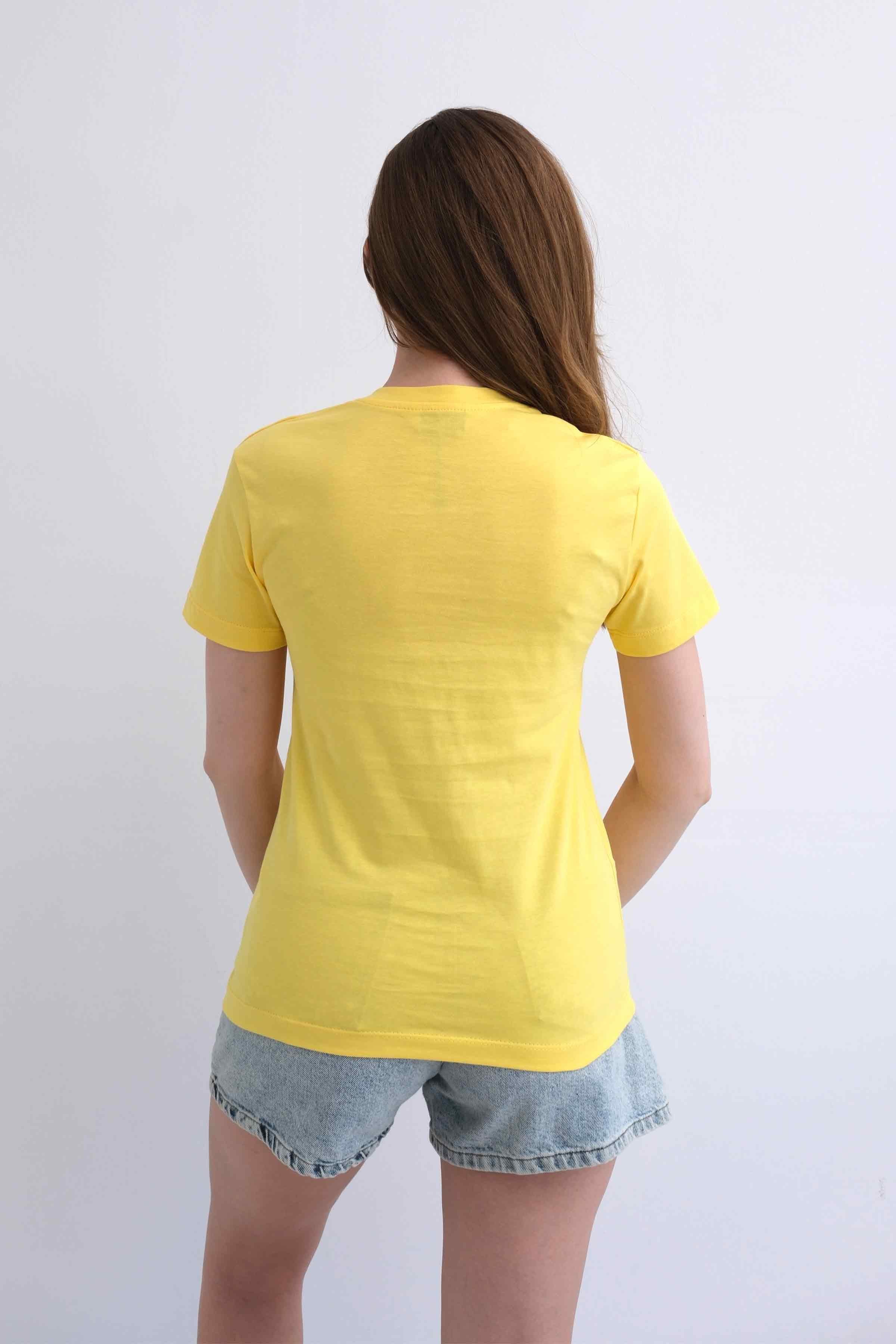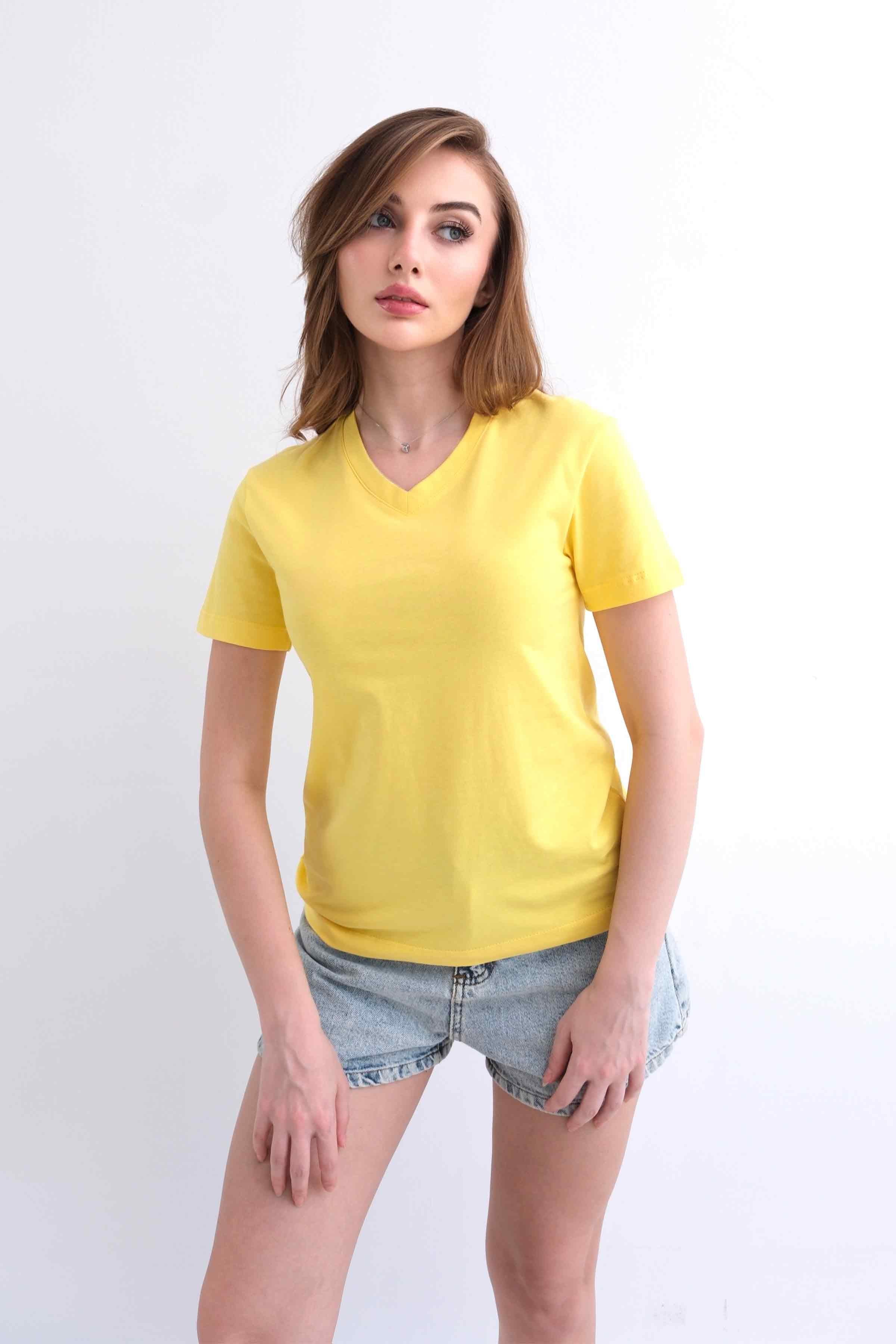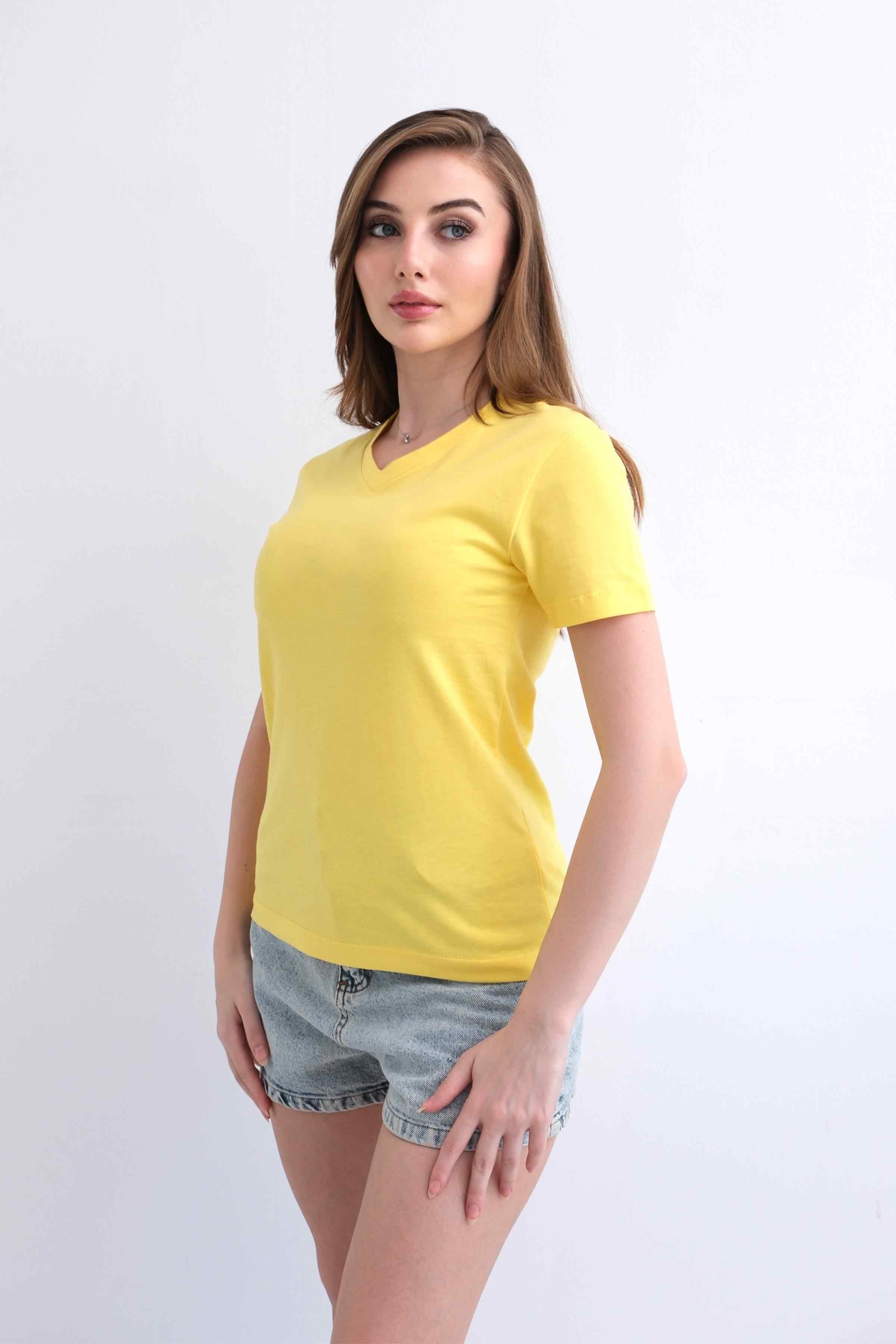 Women’s V-Neck Plain 100% Cotton Basic T-Shirt – Yellow (Y-25-7769)