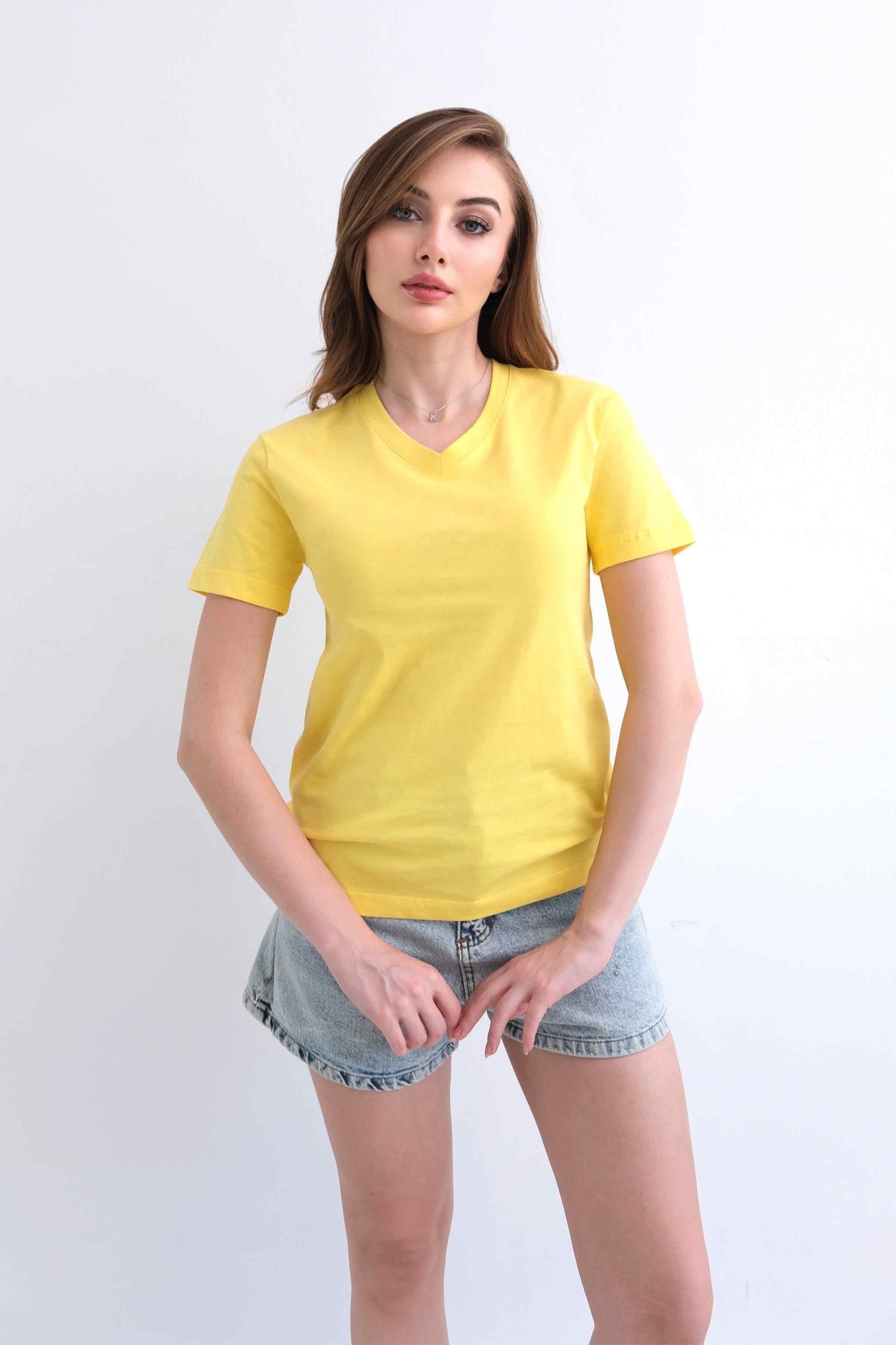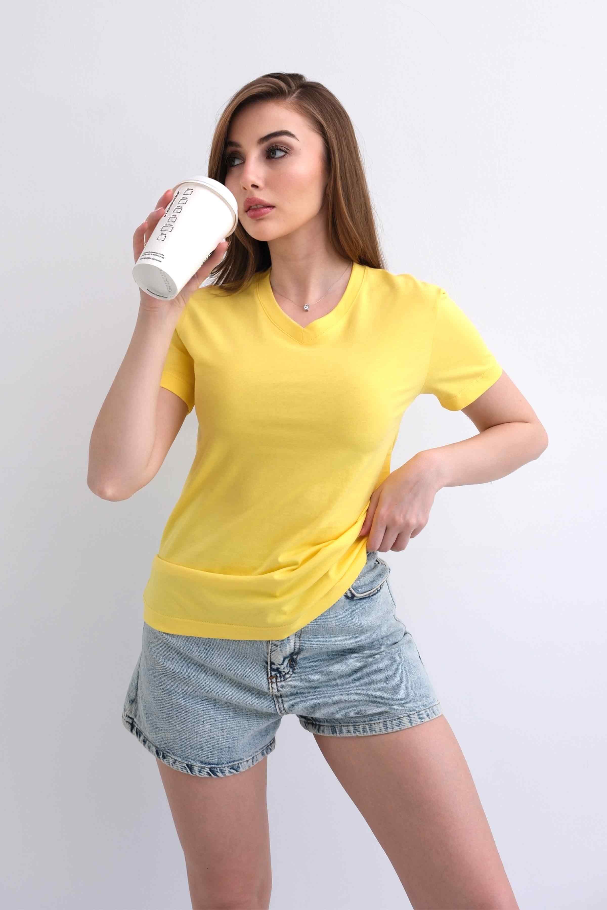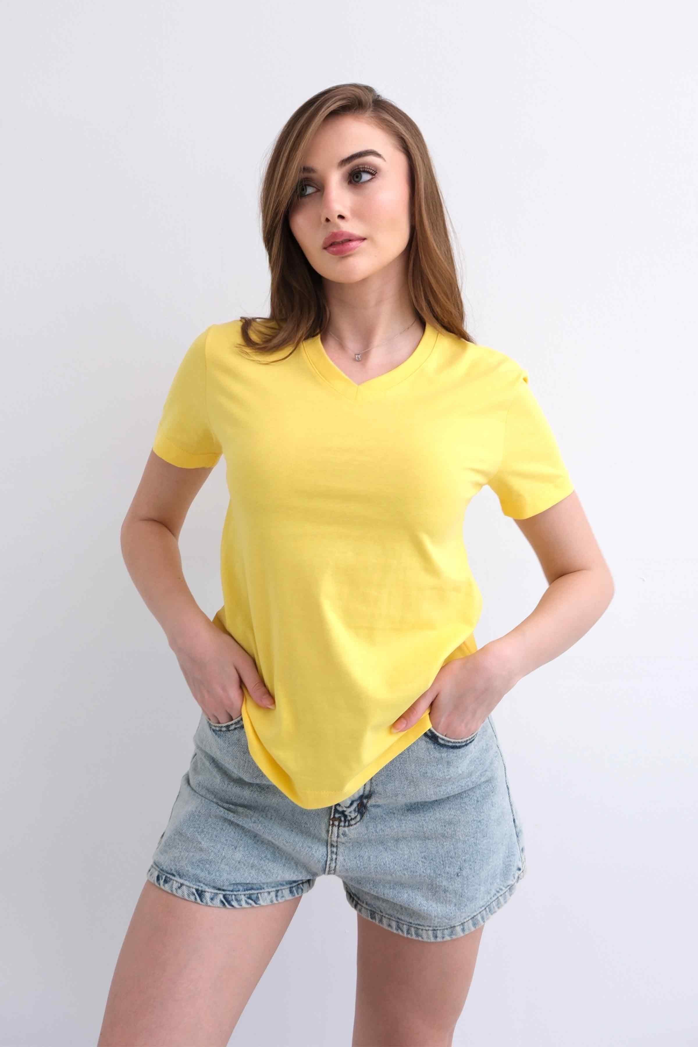Women’s V-Neck Plain 100% Cotton Basic T-Shirt – Yellow