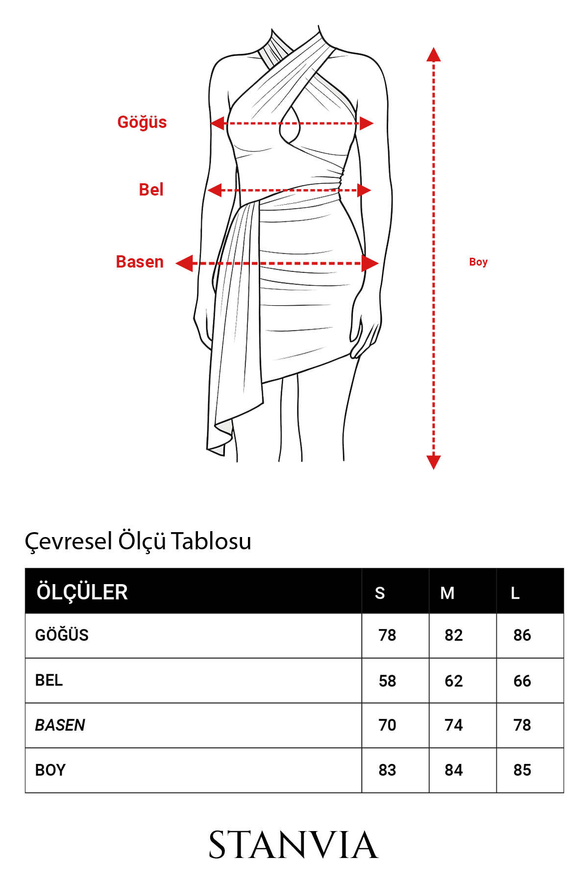 Modern ve feminen tarzı bir araya getiren Önü Çapraz Büzgülü Kuşak Detaylı Sandy Mini Elbise, şıklığına önem veren kadınların gardırobunda mutlaka bulunması gereken özel bir parçadır. Vücudu saran tasarımı ve kuşak detayı, zarif bir silüet oluştururken çapraz büzgülü formuyla hareketli ve dikkat çekici bir görünüm sunar.