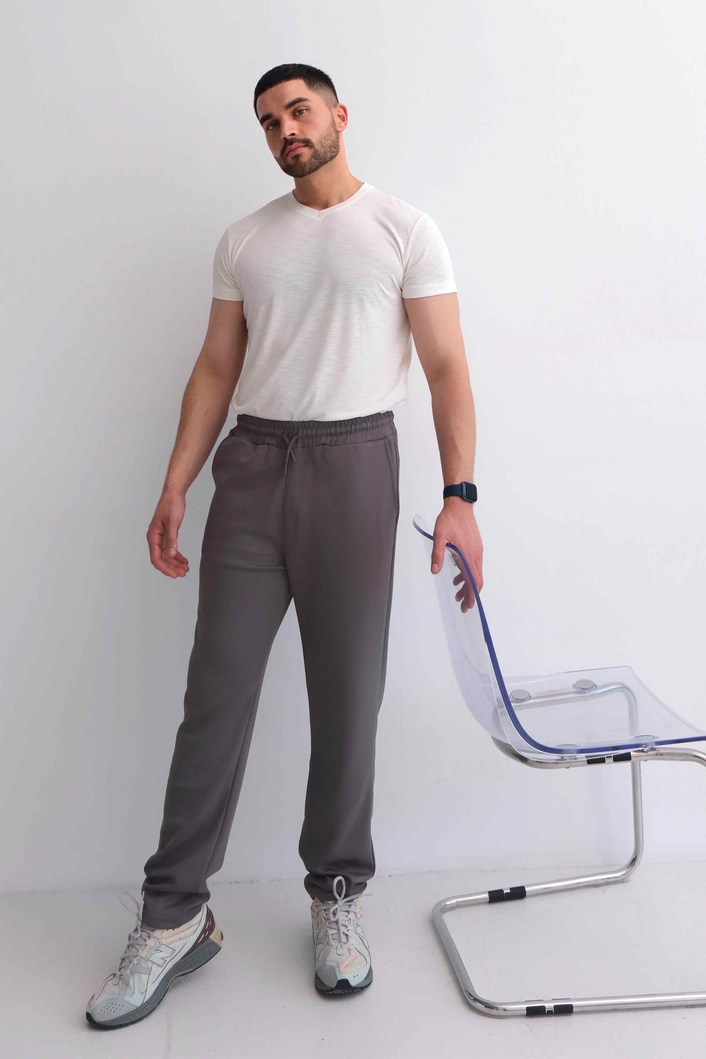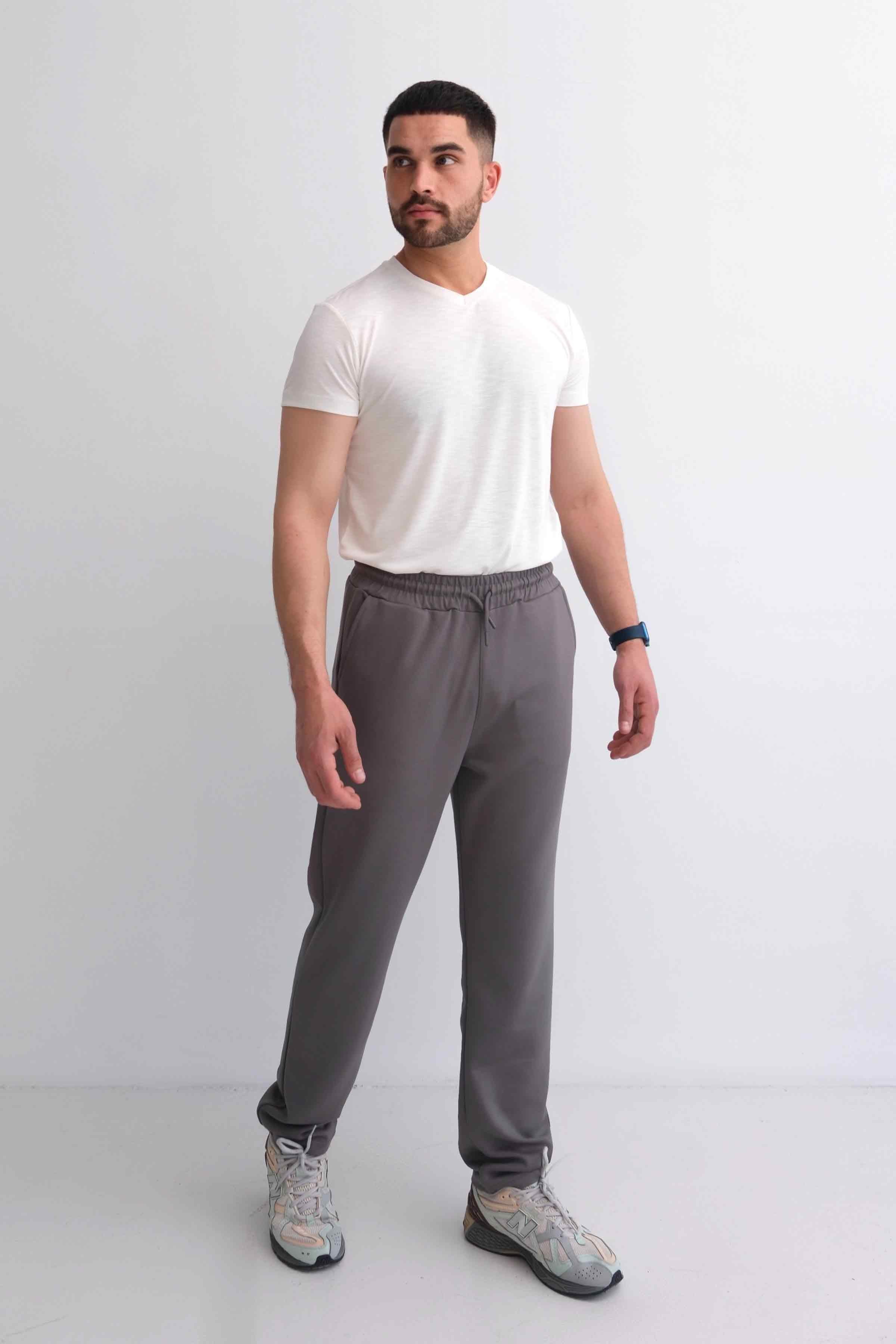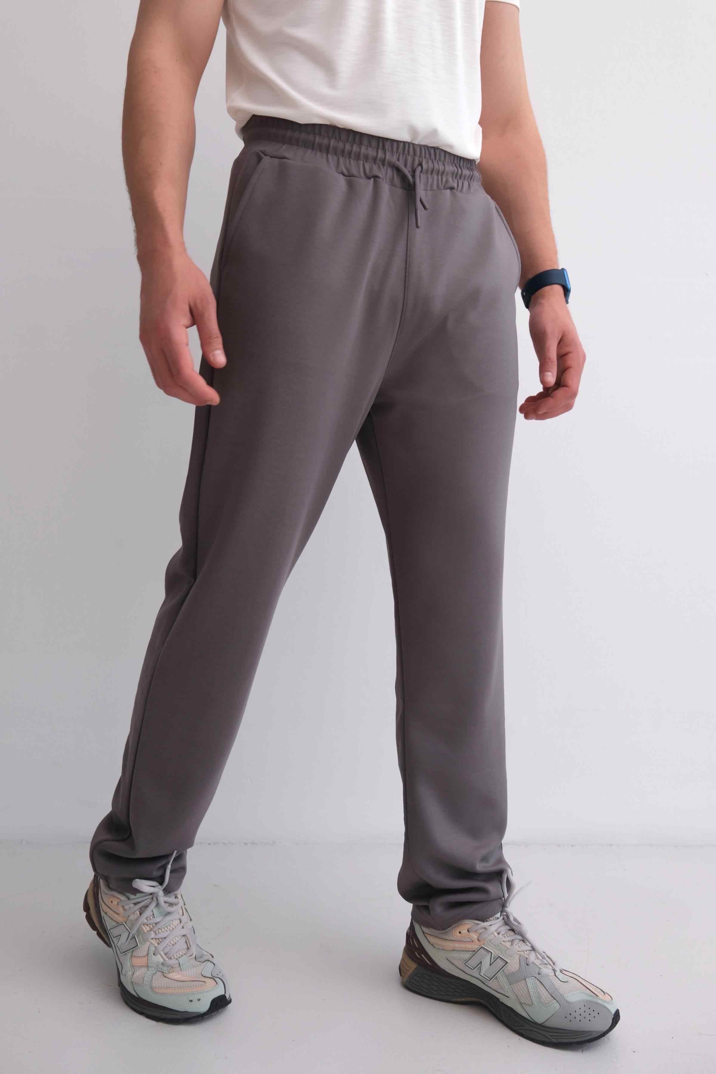 Relax Fit Modal Sweatpants with Pockets, Straight Leg - Grey (Y-25-869)