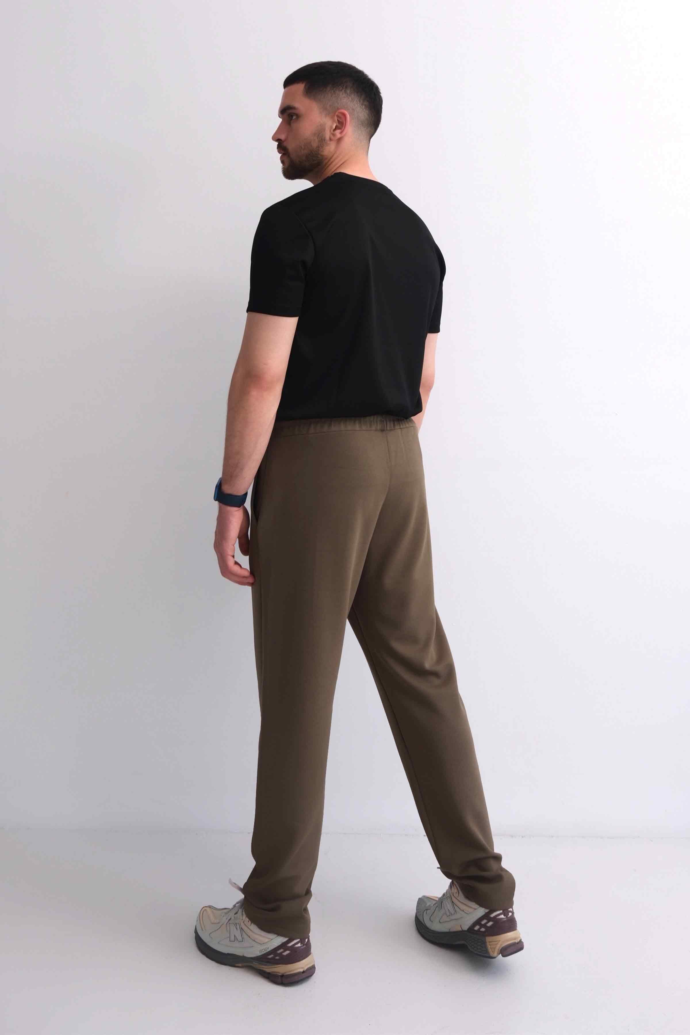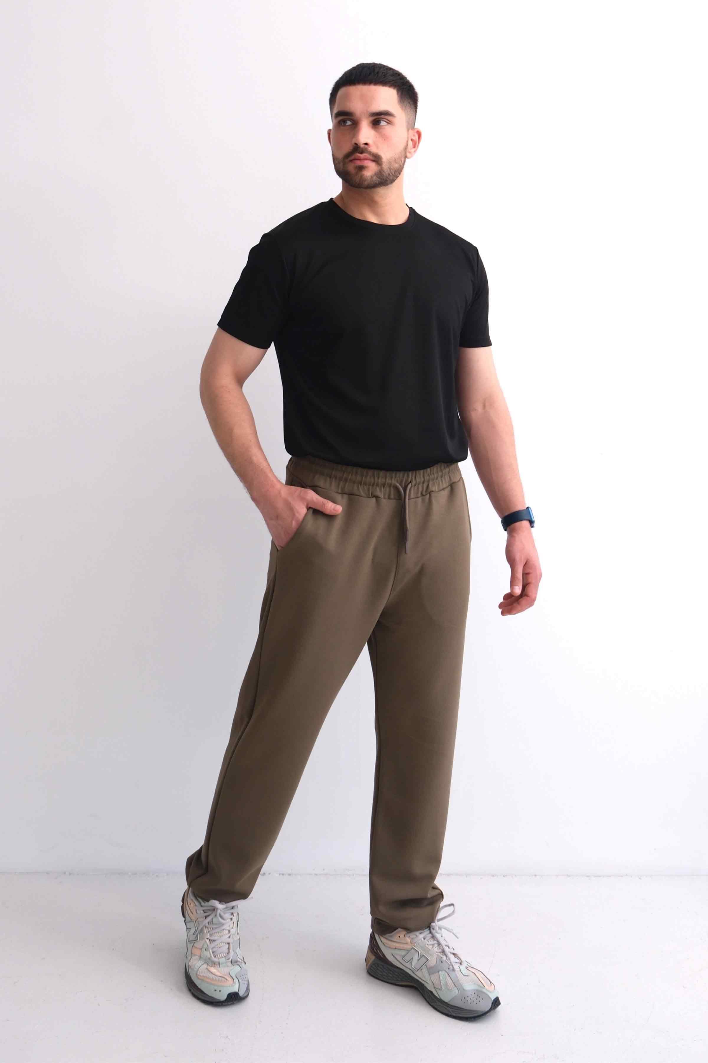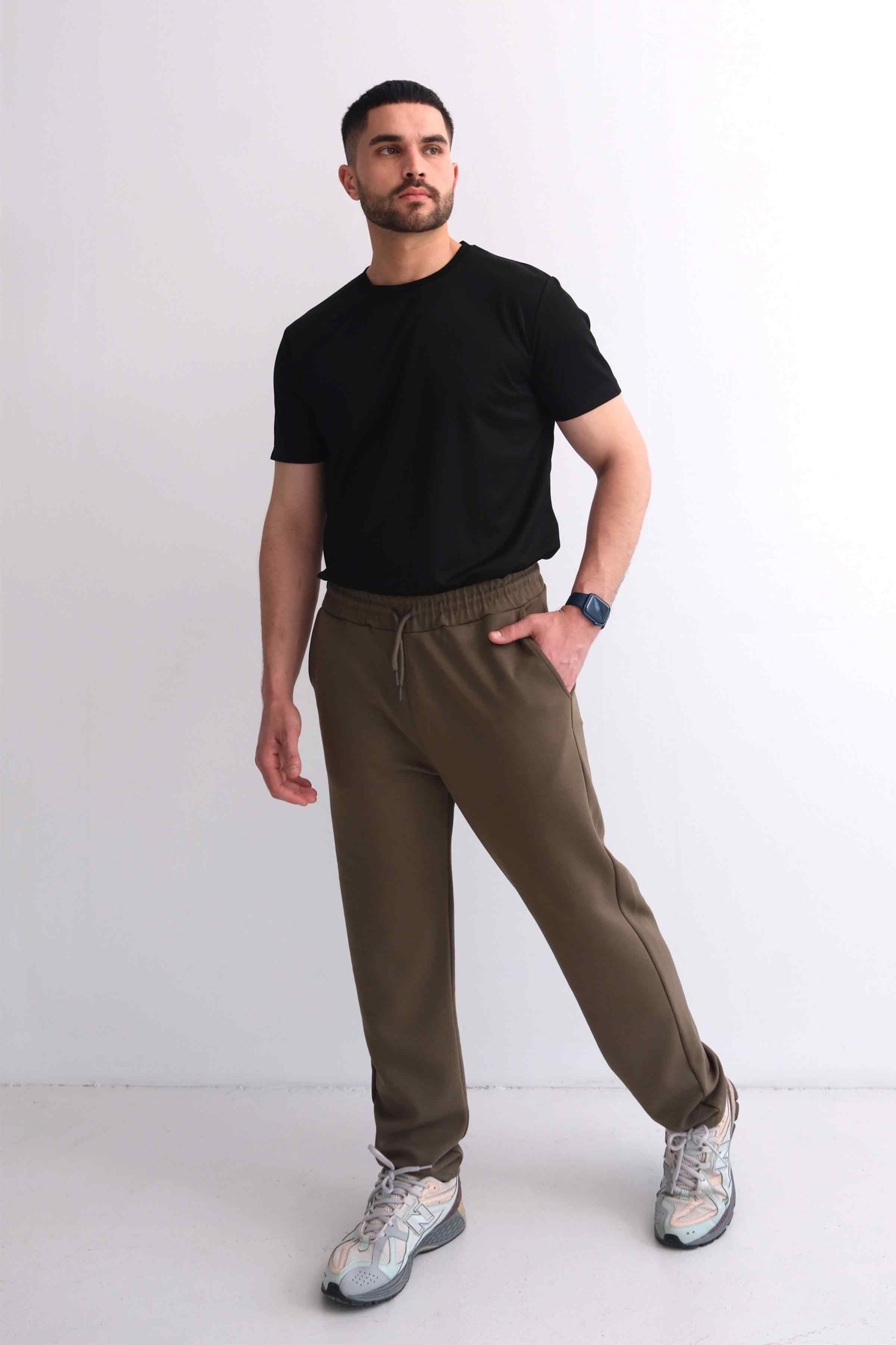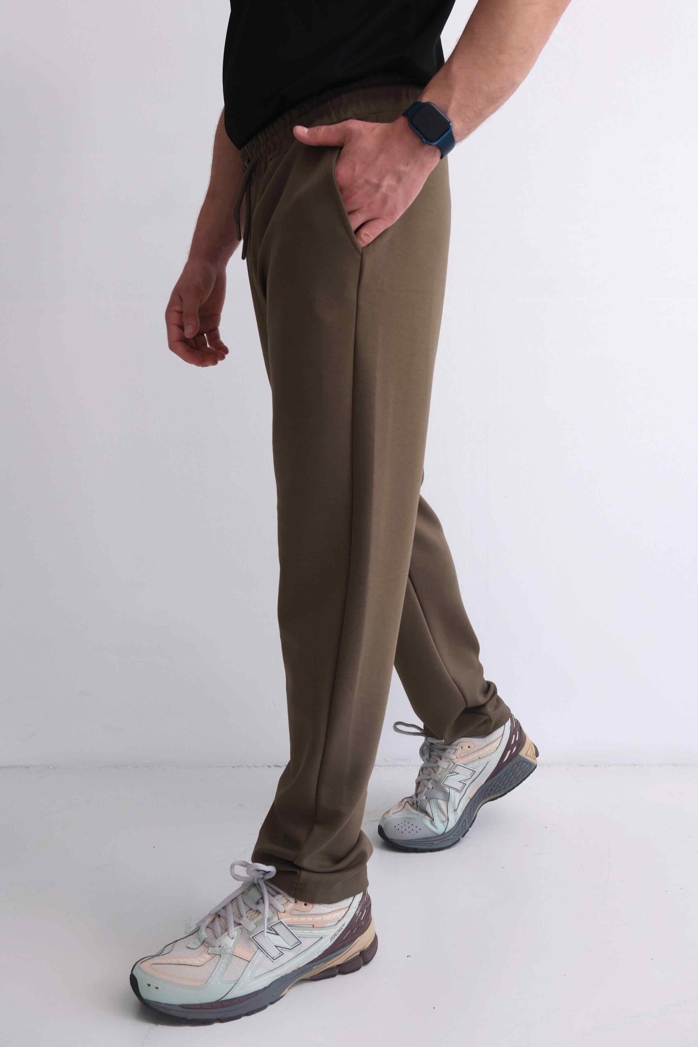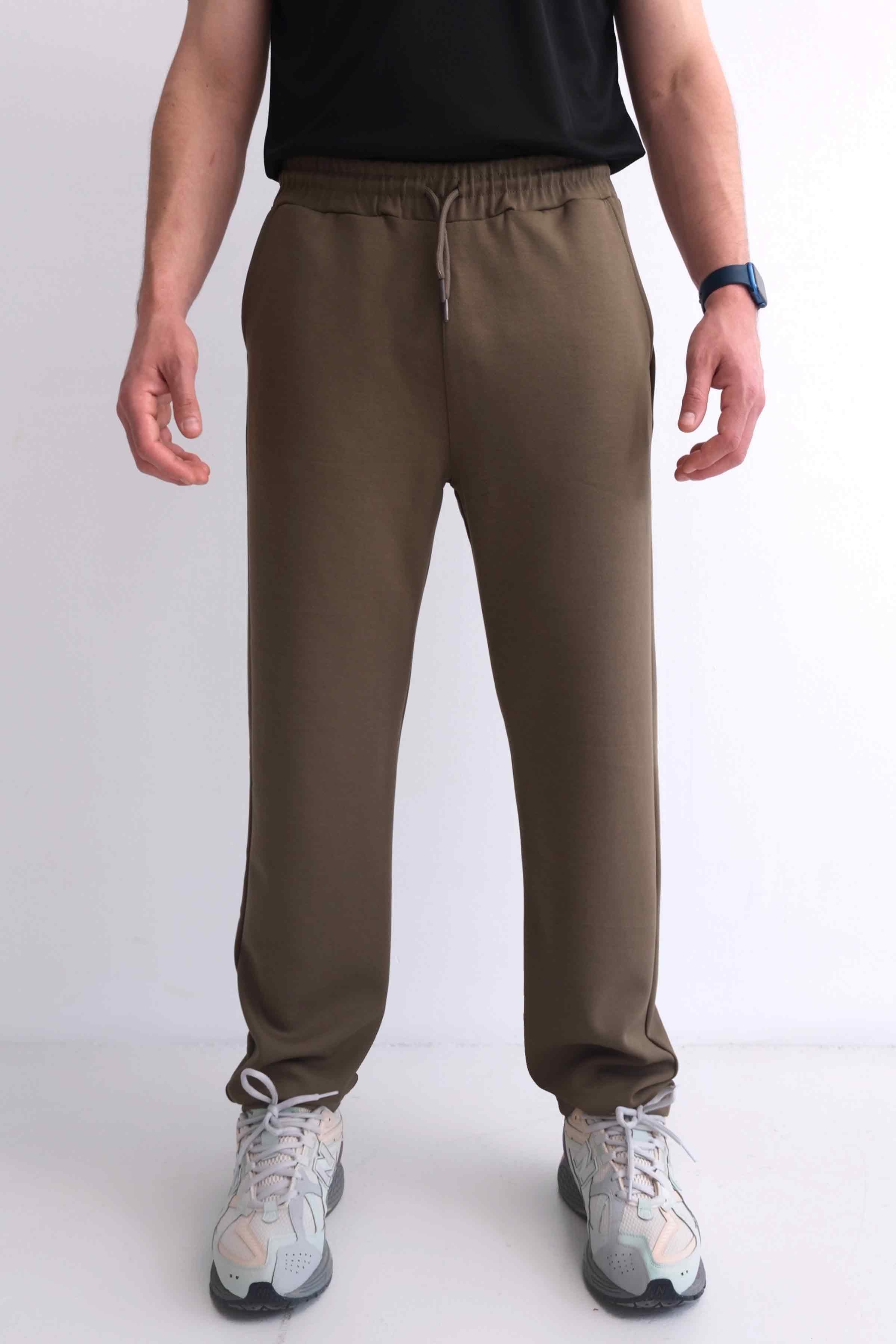 Relax Fit Modal Sweatpants with Pockets, Straight Leg - Khaki (Y-25-869)