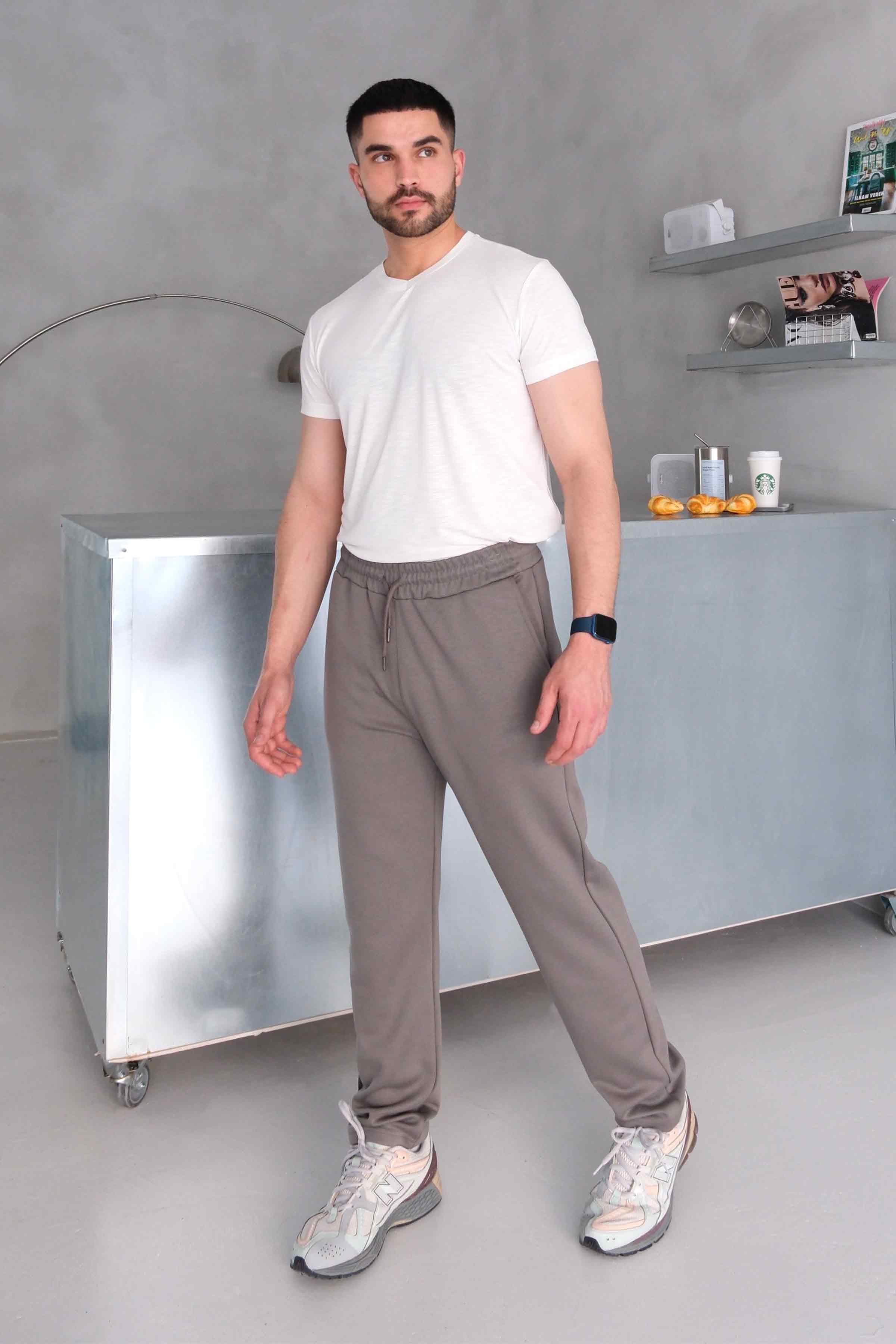 Relax Fit Modal Sweatpants with Pockets, Straight Leg - Taupe (Y-25-869)