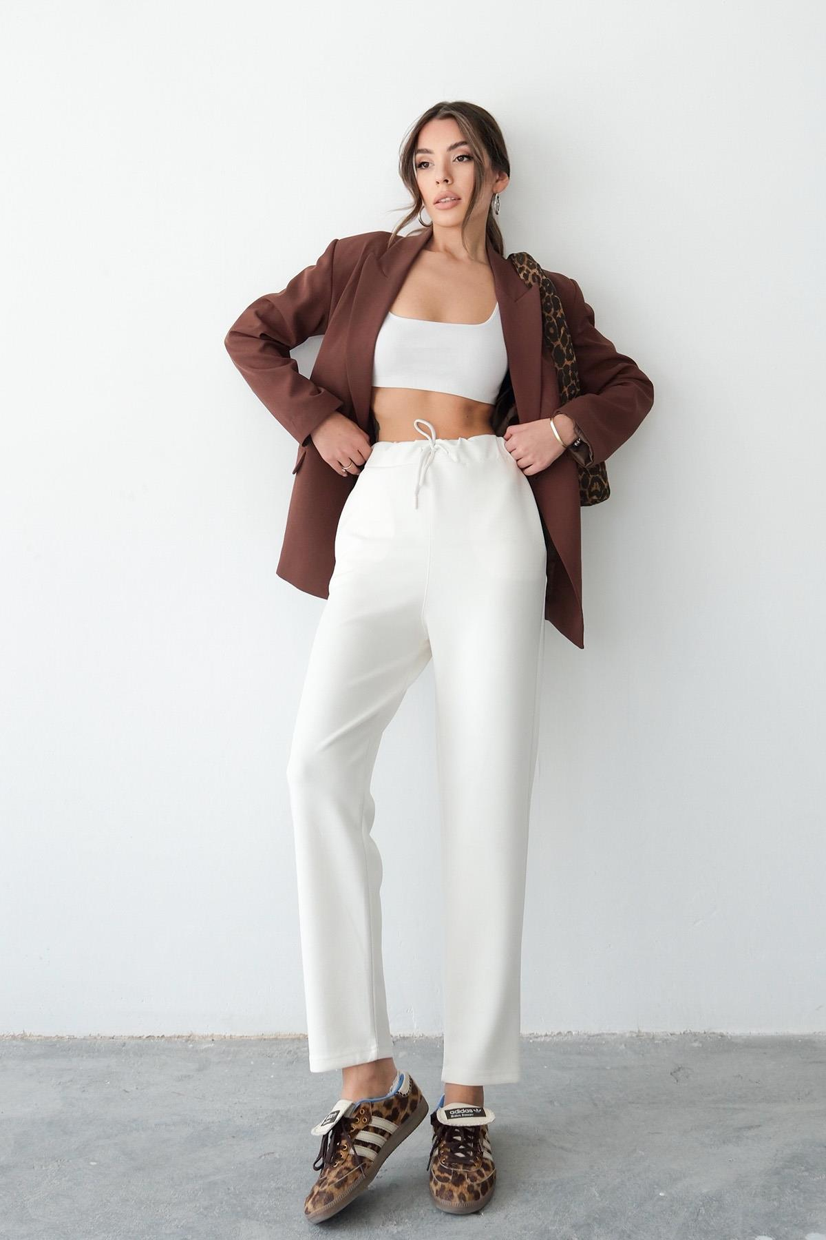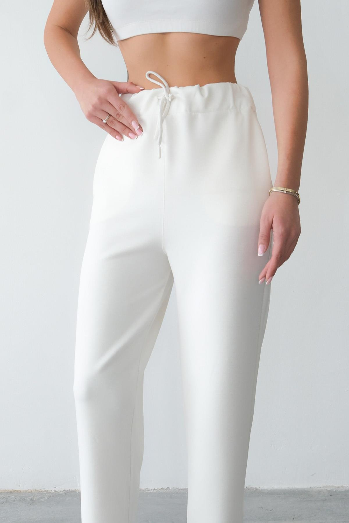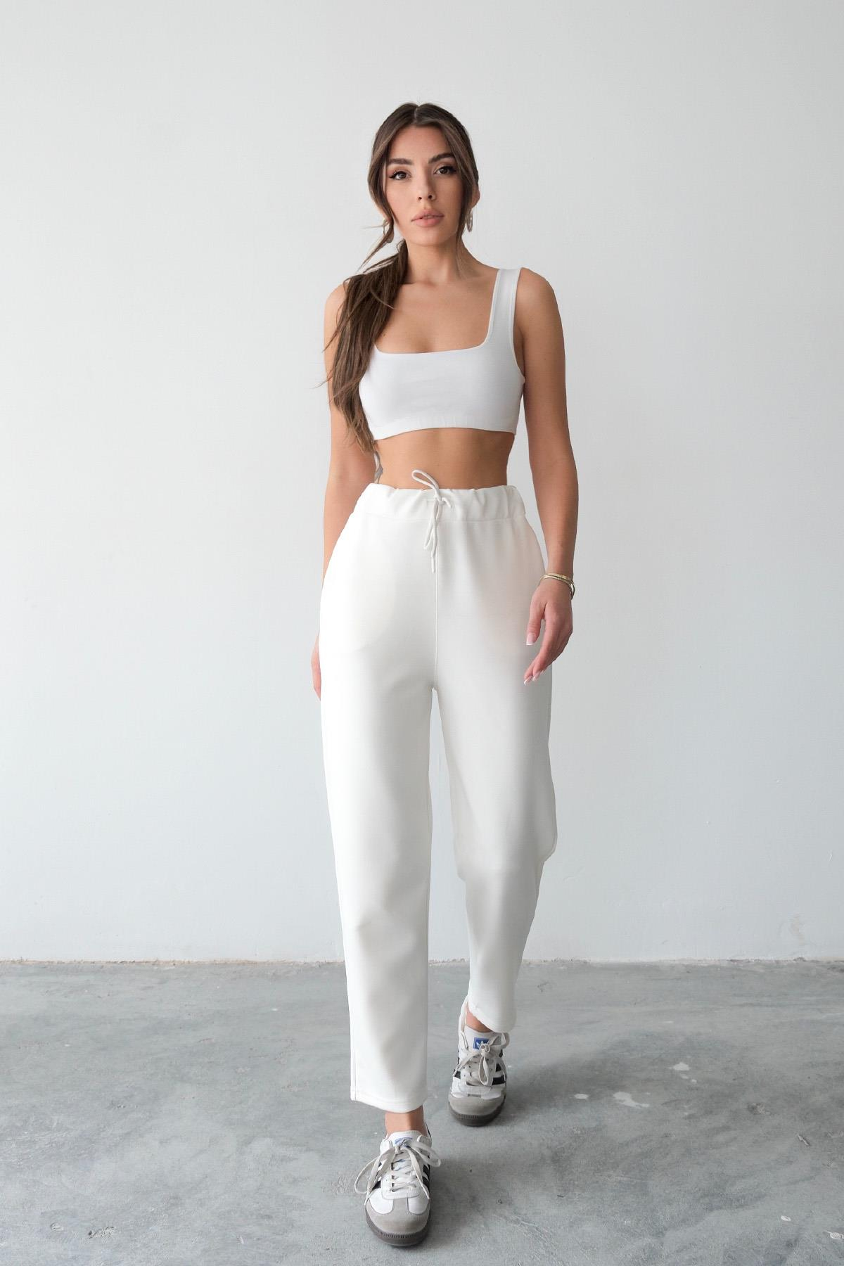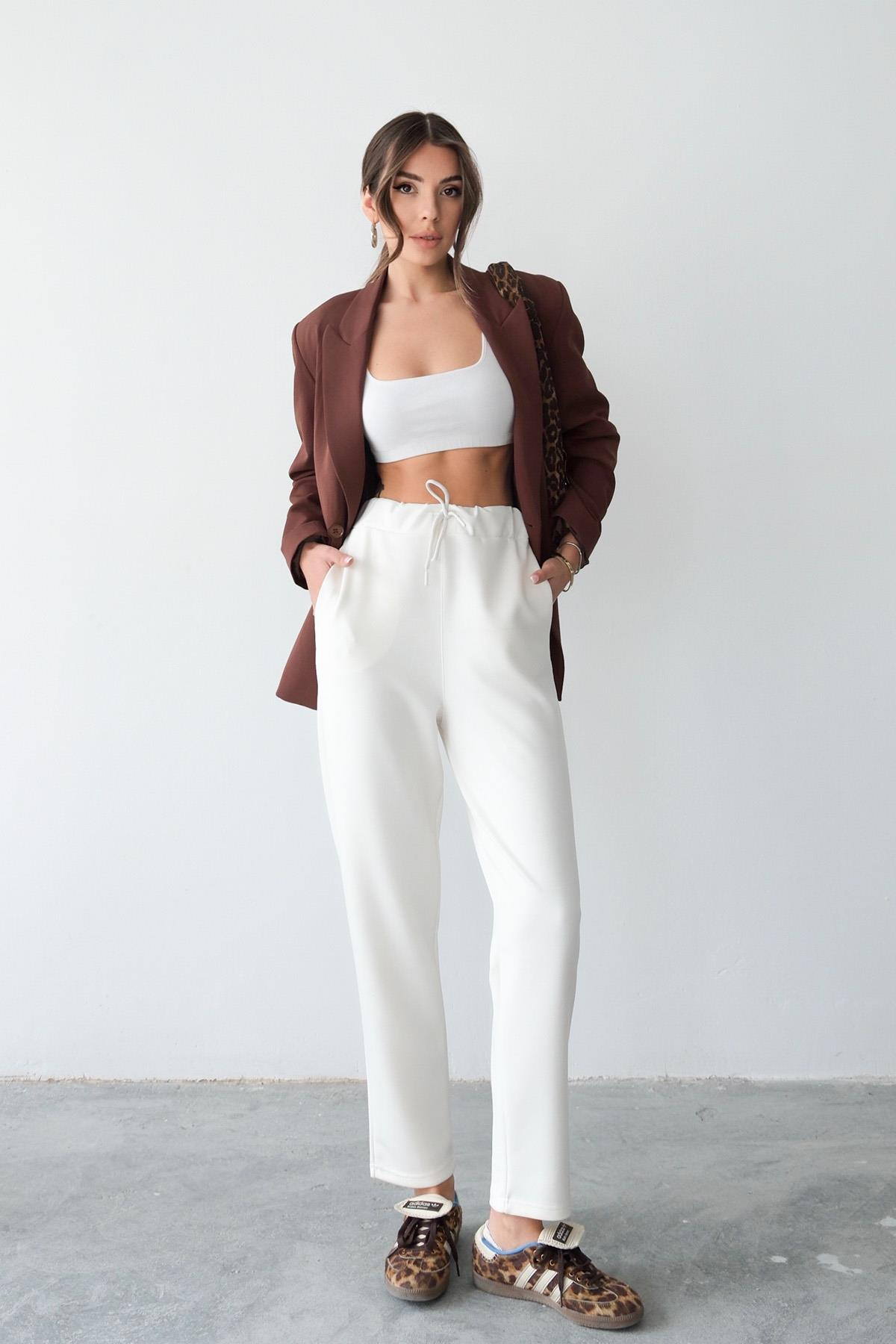 Regular Fit Drawstring Modal Women’s Straight-Leg Sweatpants - Ecru (Y25-7728)