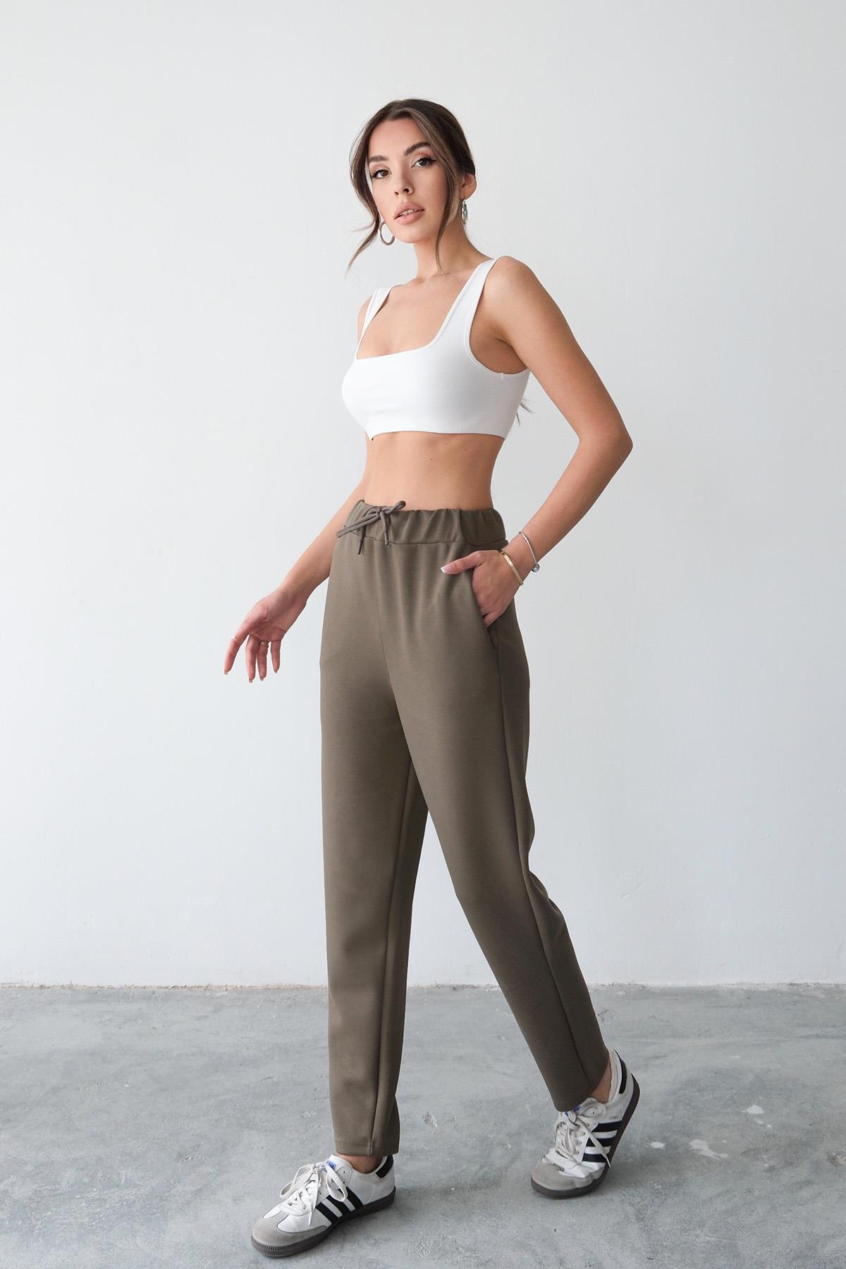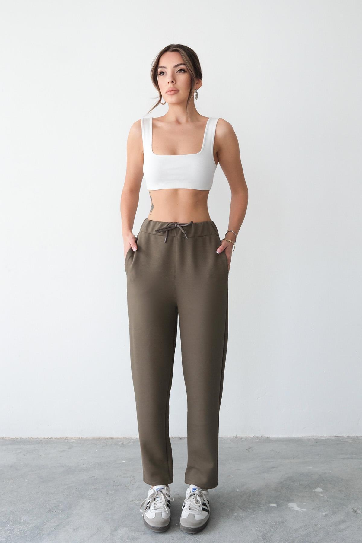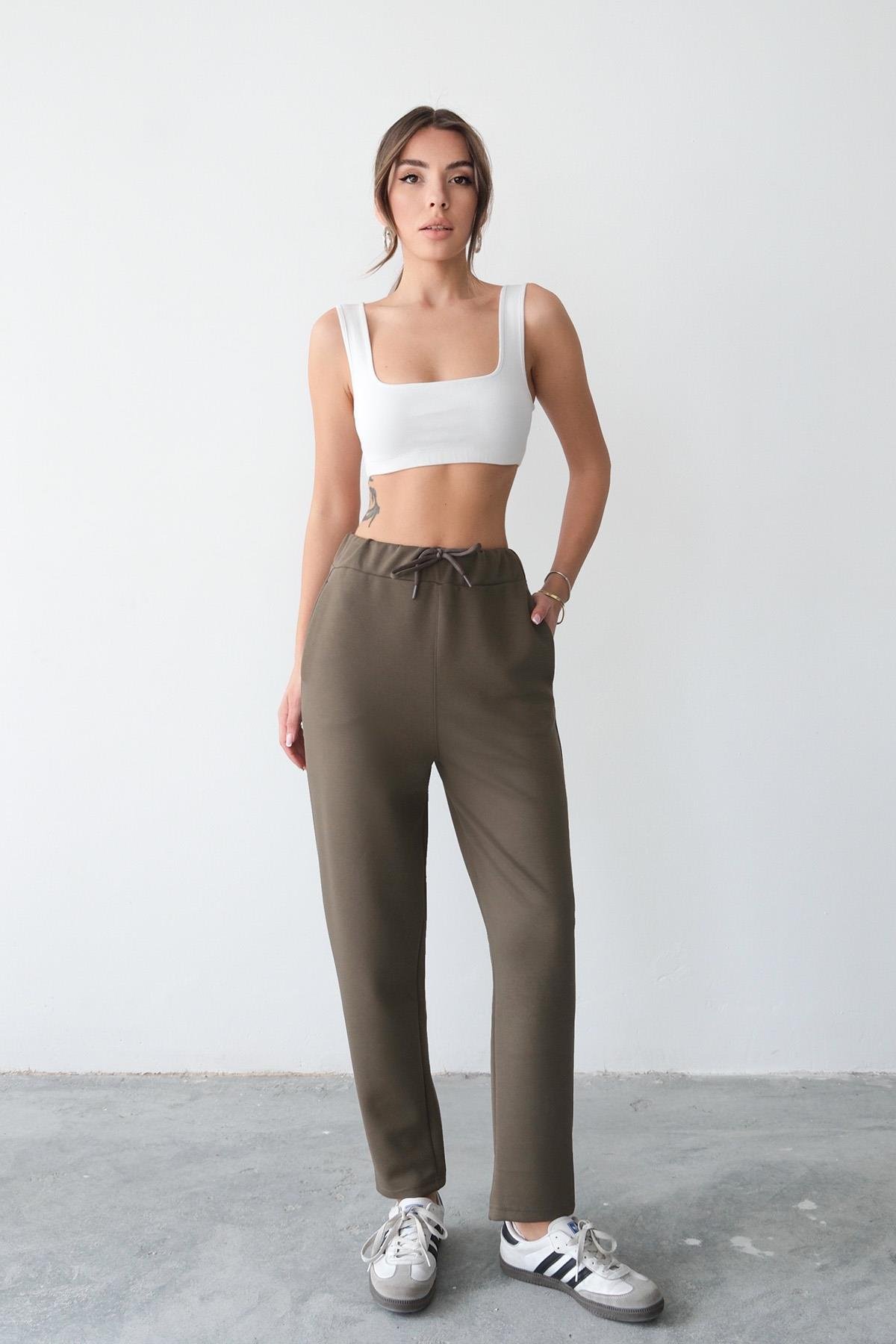Regular Fit Drawstring Modal Women’s Straight-Leg Sweatpants - Khaki (Y25-7728)