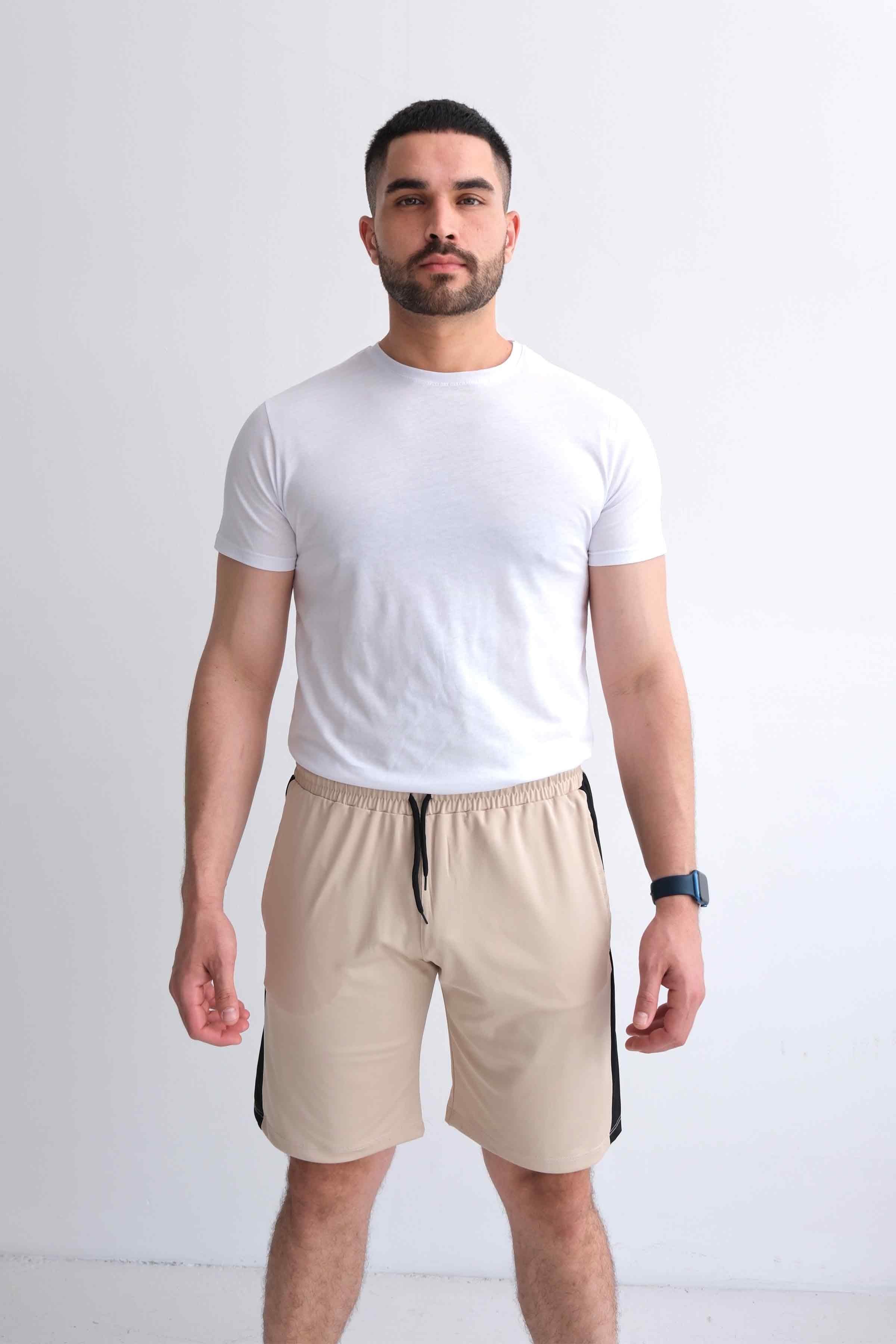 Men’s Regular-Fit Paneled Drawstring Shorts – Beige (Y-25-7766)