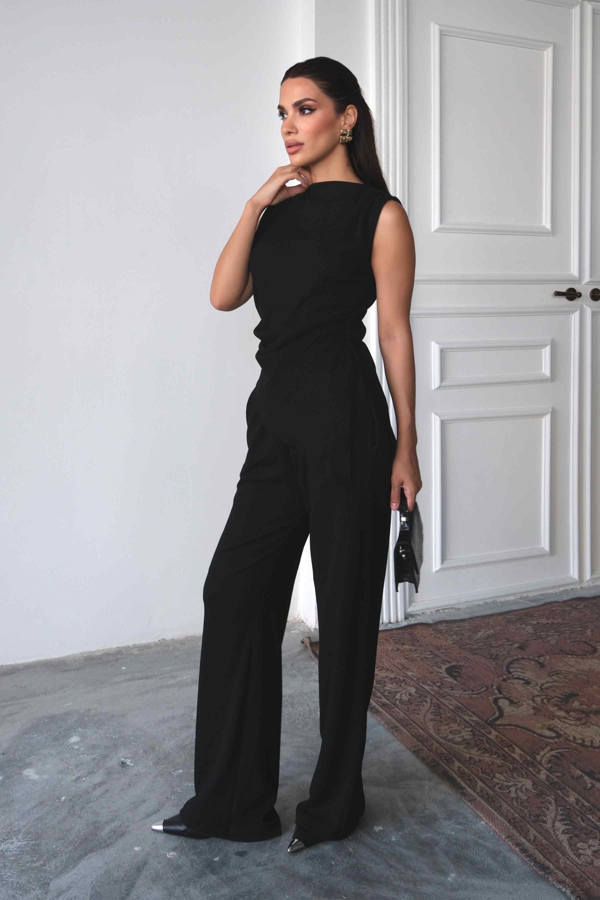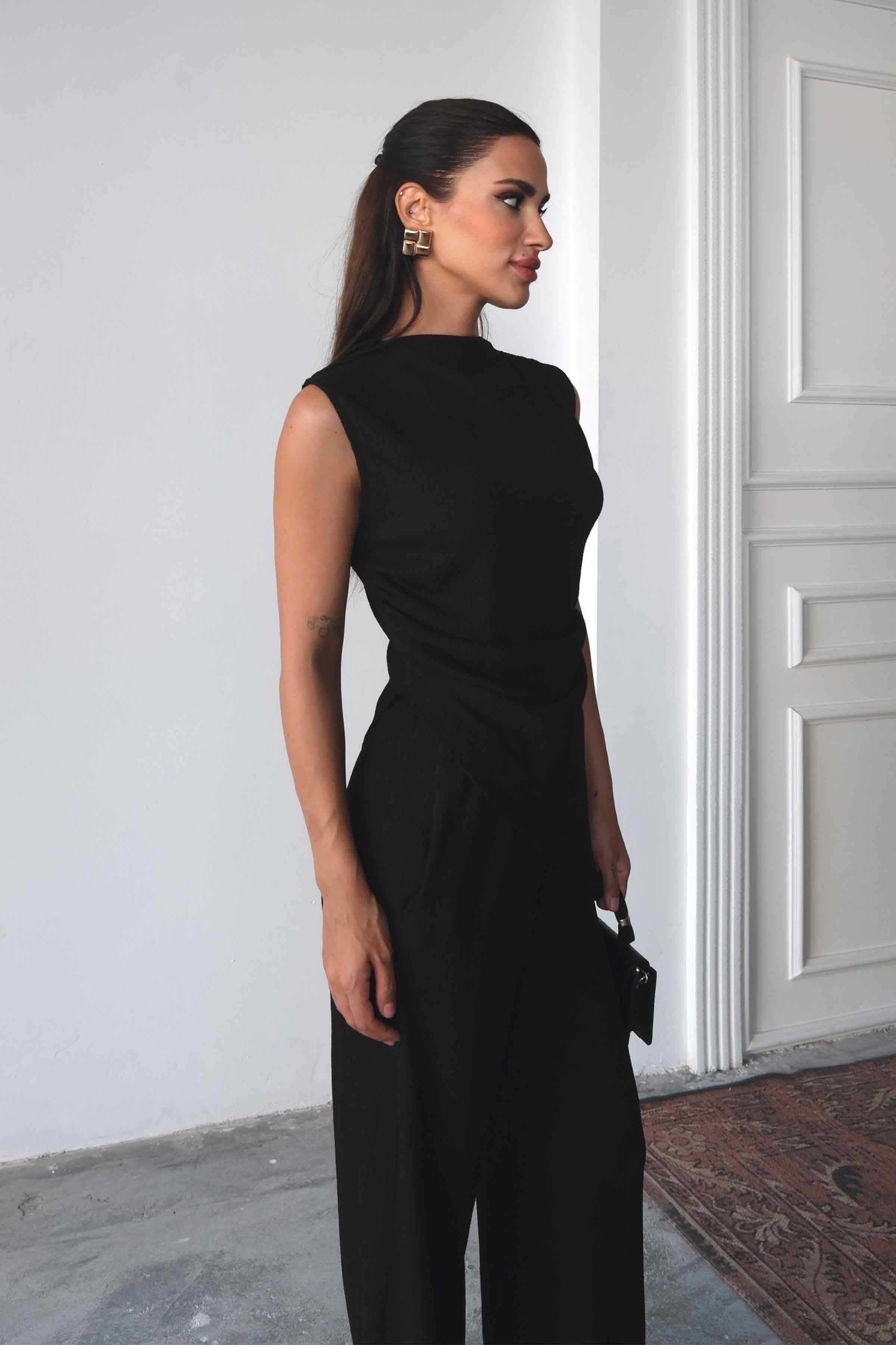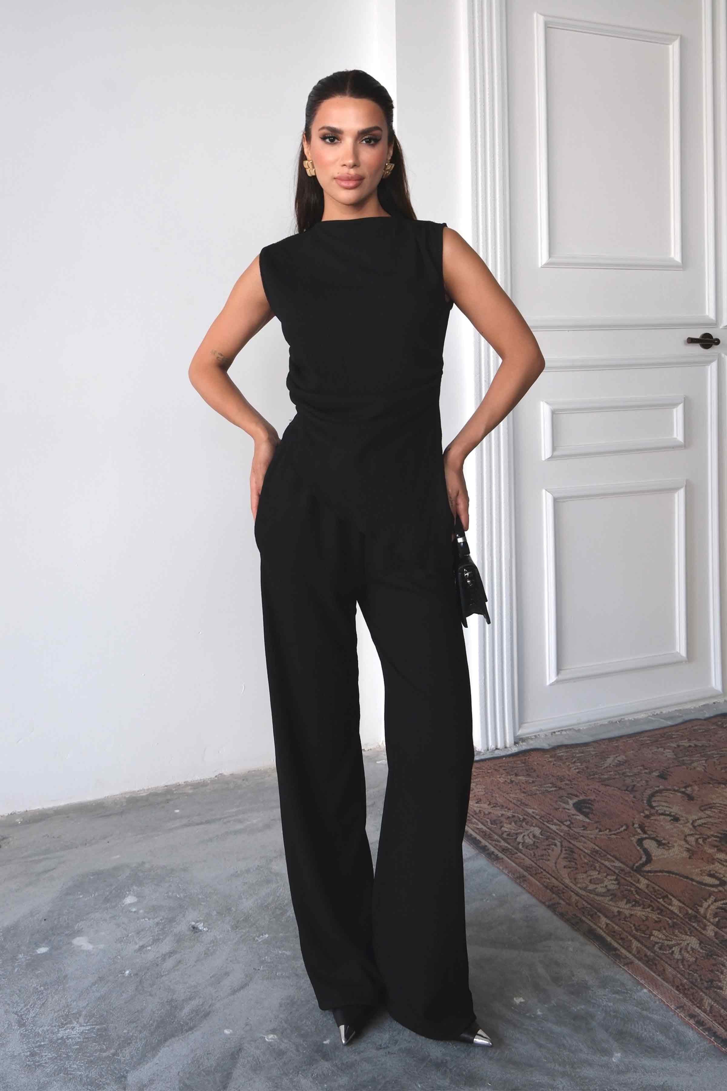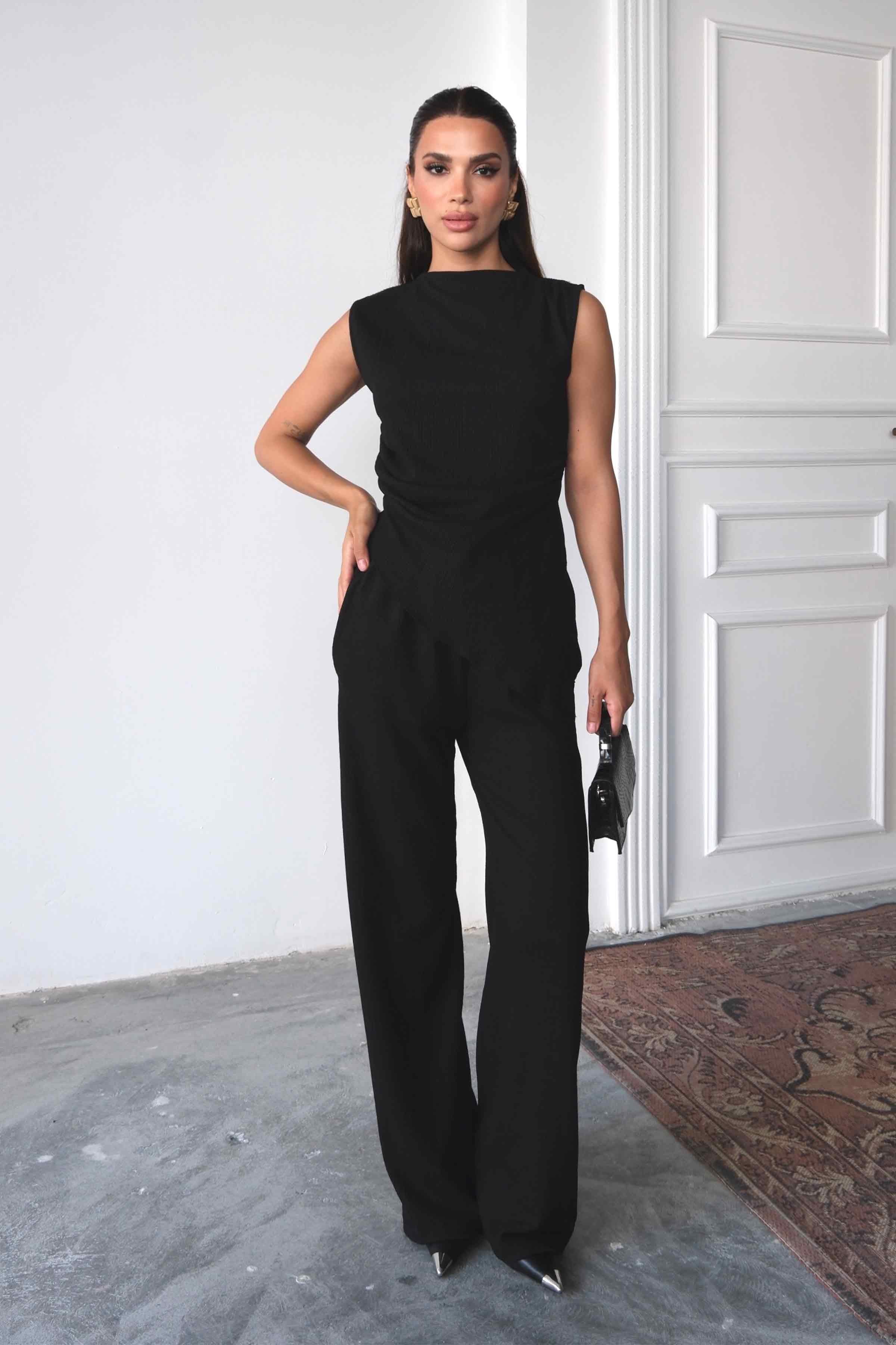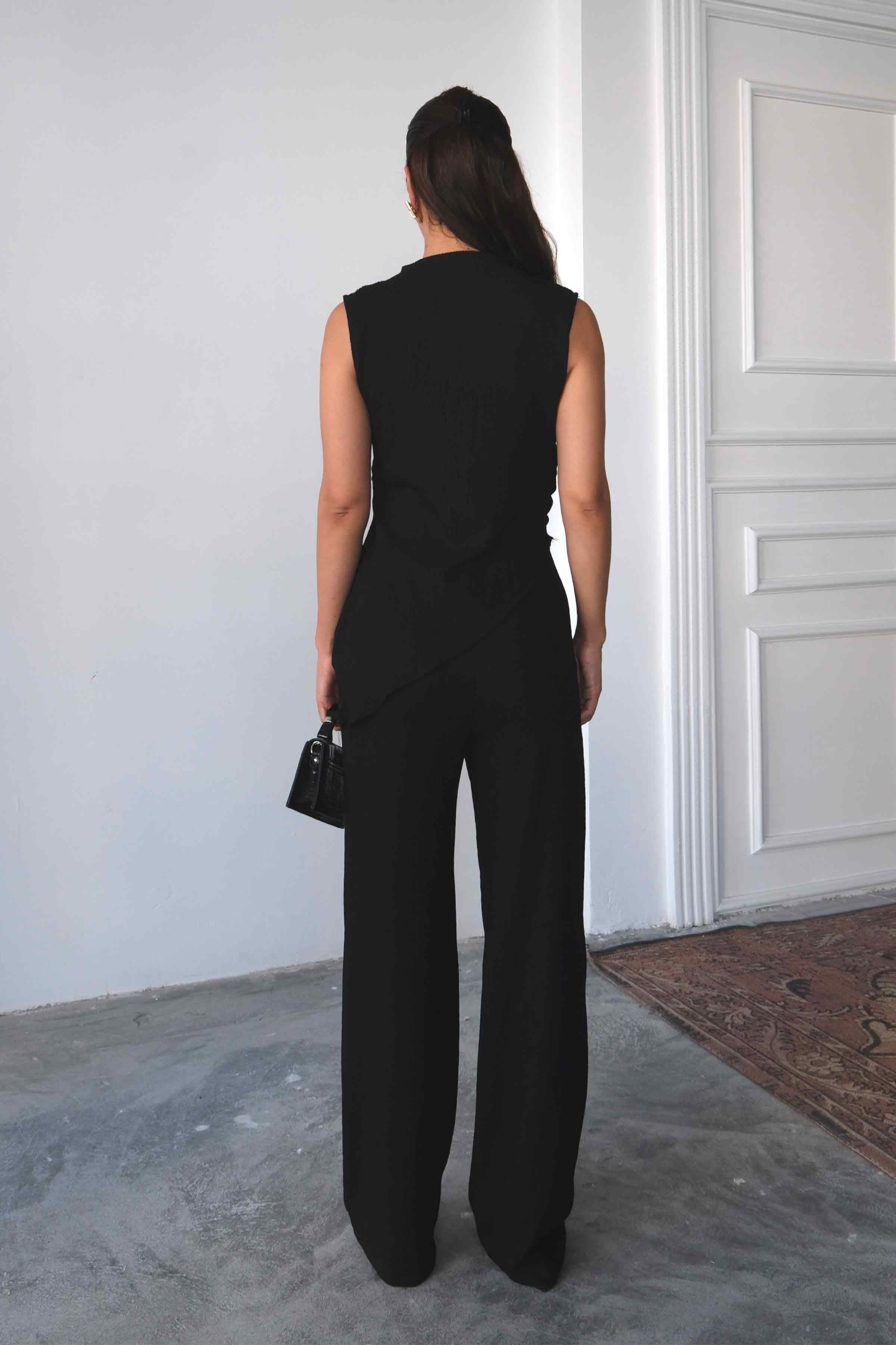 Hem rahat ve ferah kumaş dokusu hem de minimal tasarımıyla stilinize sofistike bir hava katacak bu takım, topuklu ayakkabı ya da düz sandaletlerle kolayca kombinlenebilir.