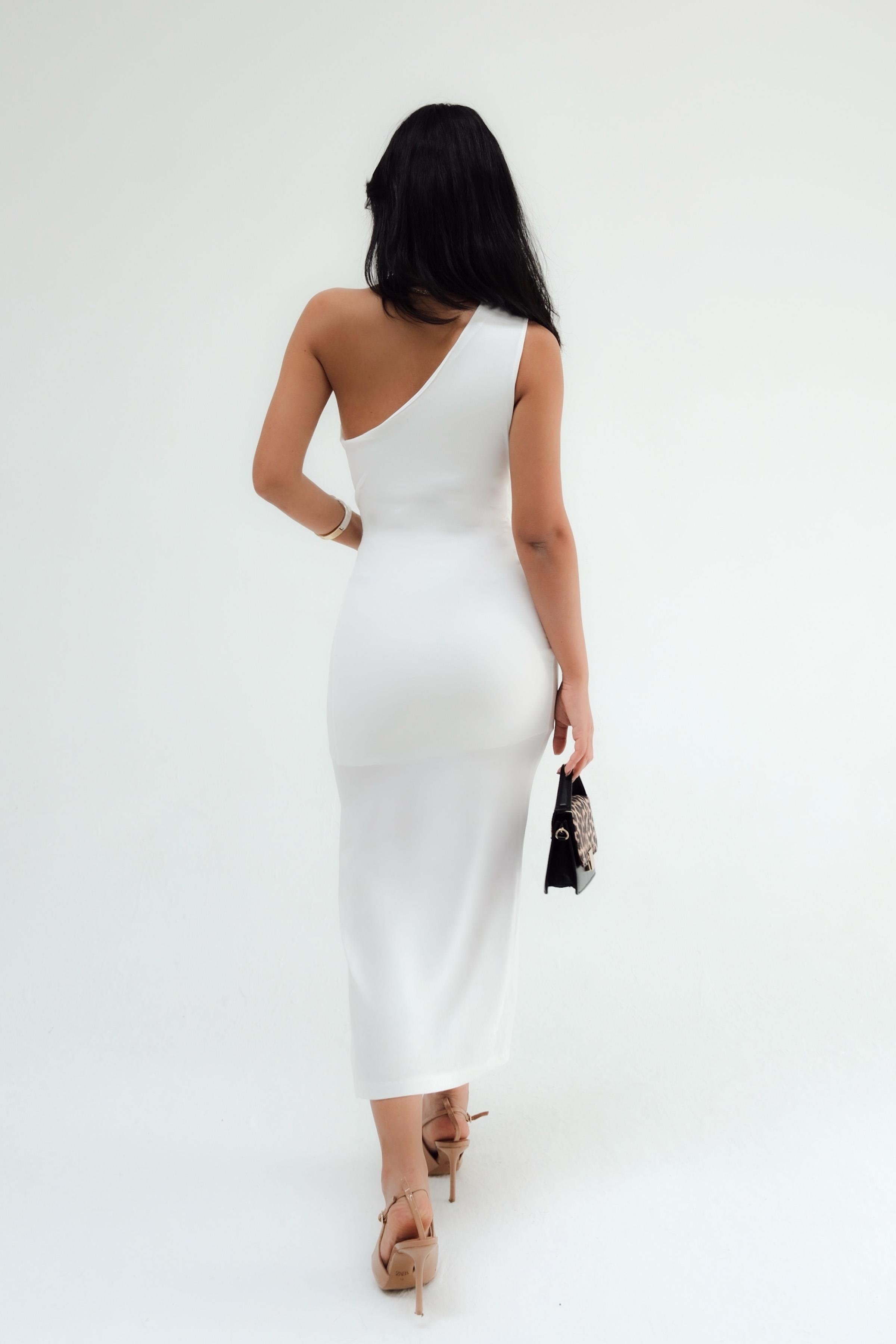 One-Shoulder Draped Sandy Midi/Maxi Dress - White (Y-25-7748)