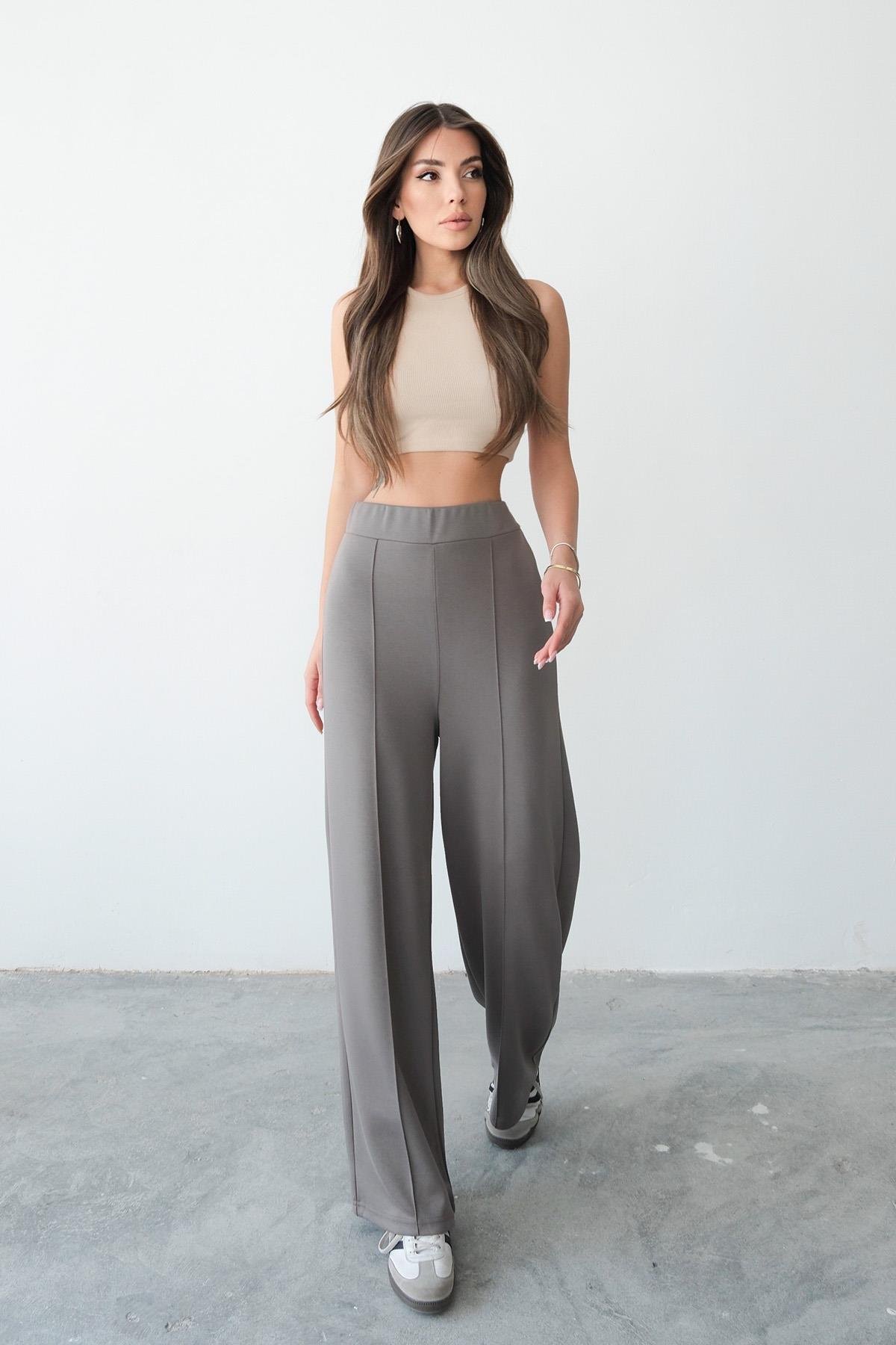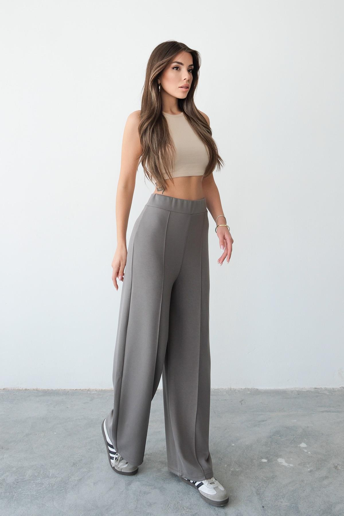 Yüksek bel tasarımı, zarif ve modern bir görünüm sunarken, çımalı eşofman formu ile farklı bir şıklık katar. Bol paça eşofman kesimi, hem özgür hareket imkânı hem de trend bir duruş sağlar.